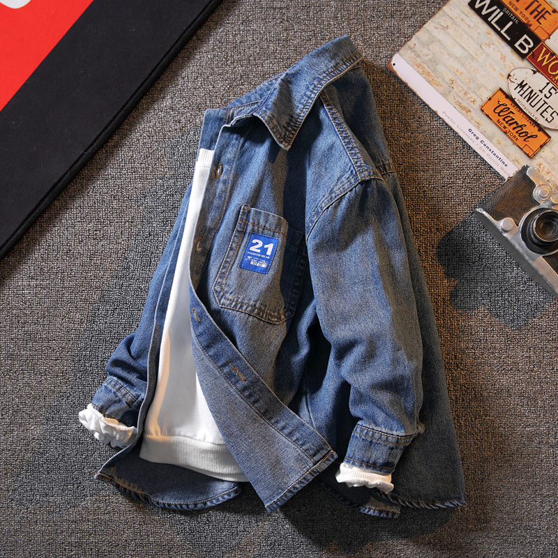 Boy Cowboy Shirt 2022 Spring Autumn Dress New CUHK Boy Fry Street Long Sleeve Boy Shirt Tide Jacket