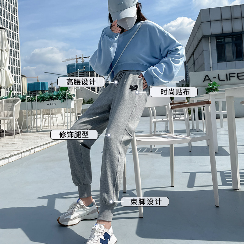 Women's 2021 new fashion small high waist slimming loose toe gray sports pants spring and autumn ins tide
