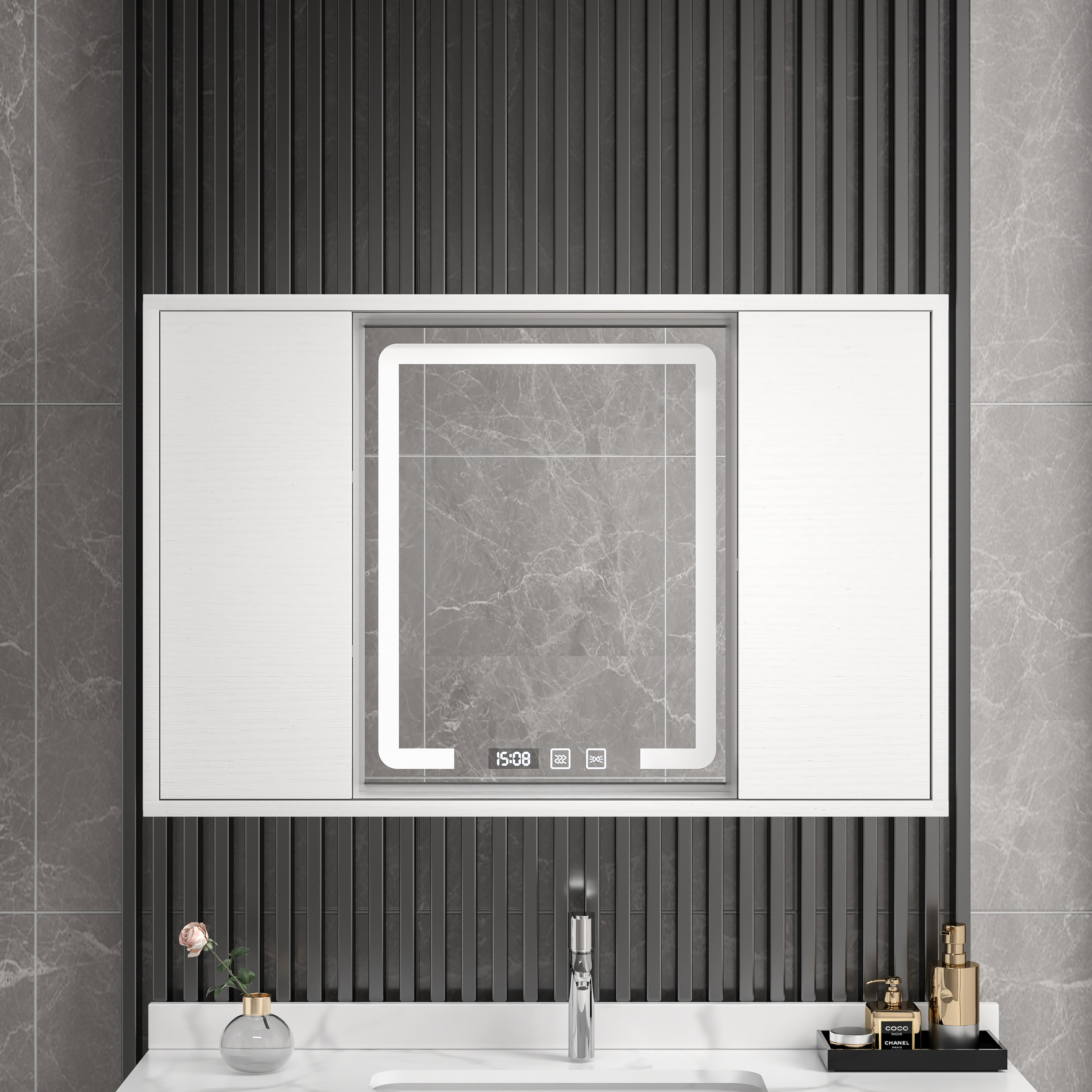 Powder room hidden feng shui mirror sliding door bathroom invisible smart mirror cabinet wall-mounted mirror solid wood storage mirror box