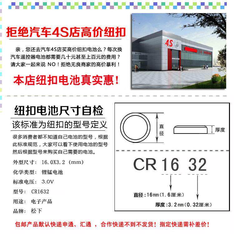 Model CR1632 Lexus CT200h ES240 ES350 car key remote control battery electronics 3v