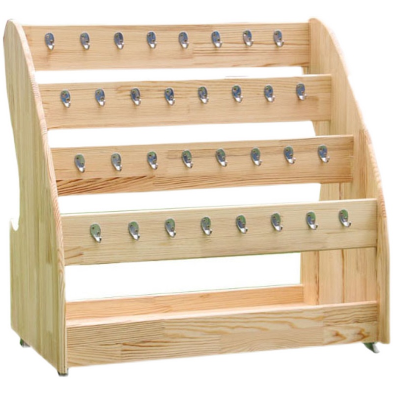 Kindergarten towel rack solid wood children's wooden mobile floor rack log free punching hook storage rack