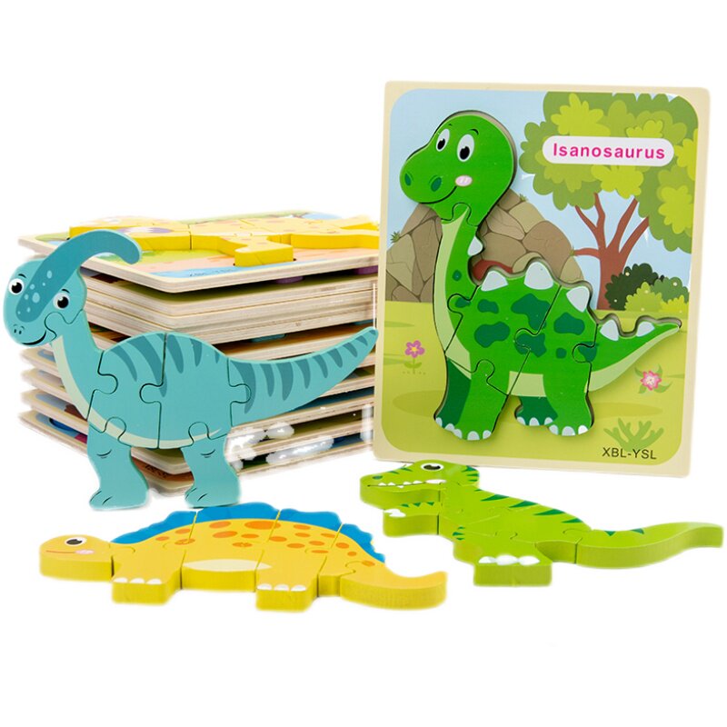 Dinosaur solid wooden jigsaw puzzle children early education Puzzle Cartoon stickers Assemble Bully Dragon Cartoon Boy Toys-Taobao
