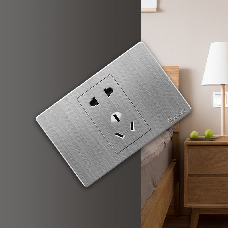 International Electrotechnical Type 118 Switch Socket Dark Panel Home Power Supply Wall Brushed Grey One Small Box Five Holes