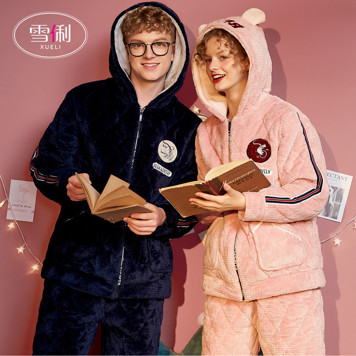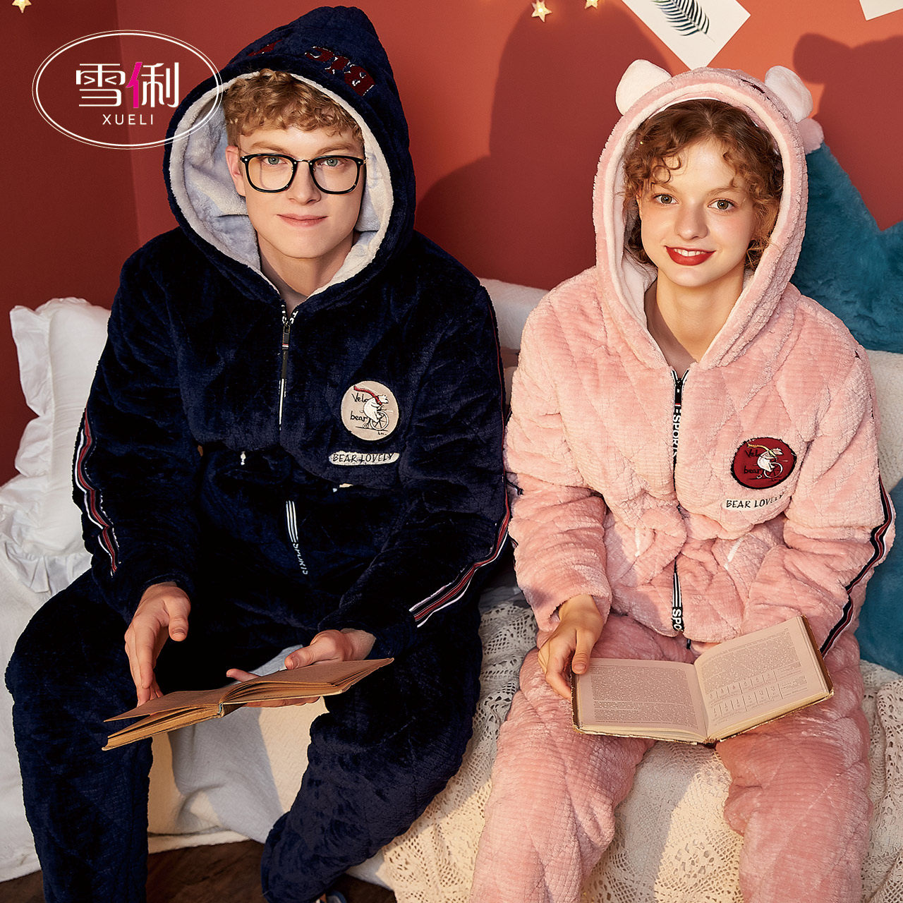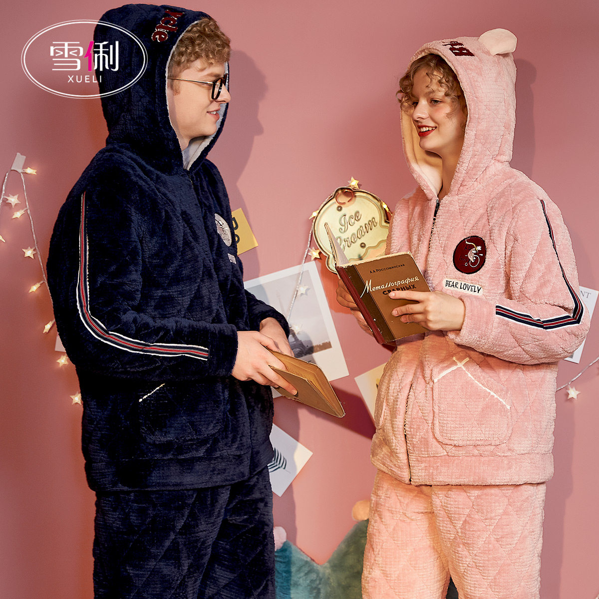 Snow Li pajamas winter women thickened plus pluse three layers of cotton male coral fleece couple flannel home clothes winter model