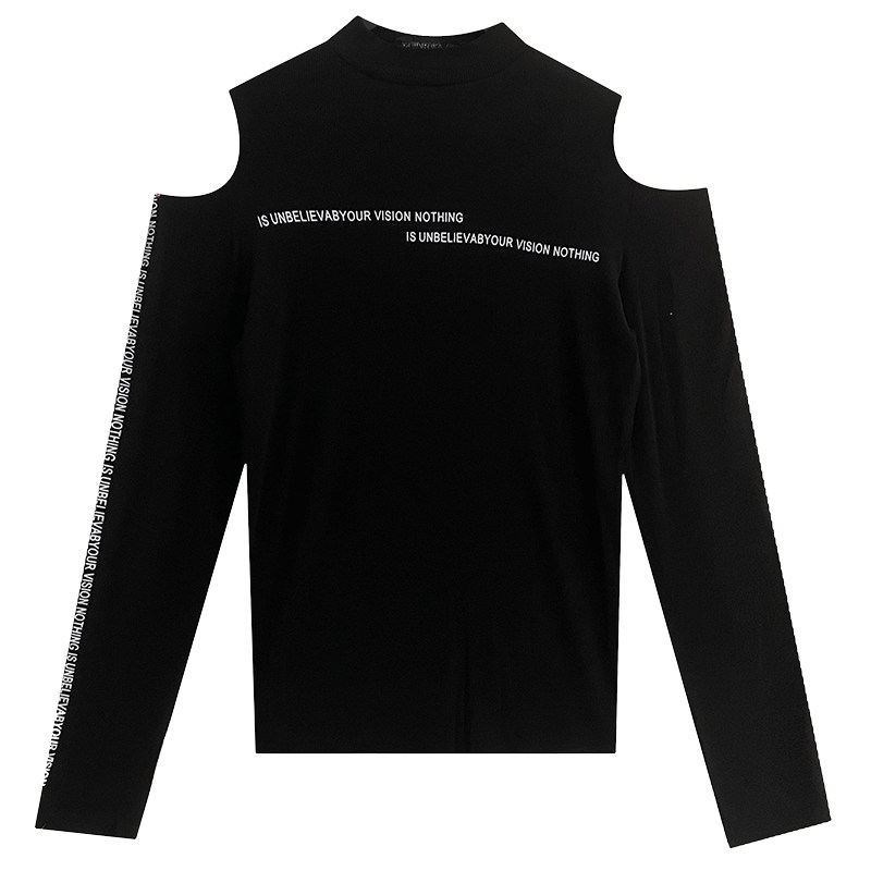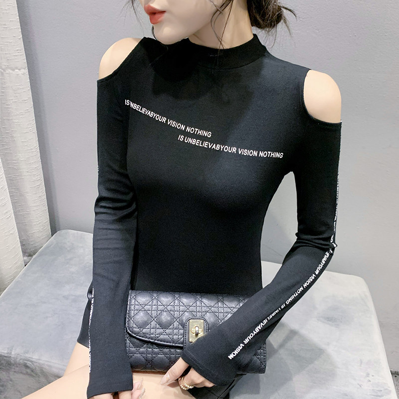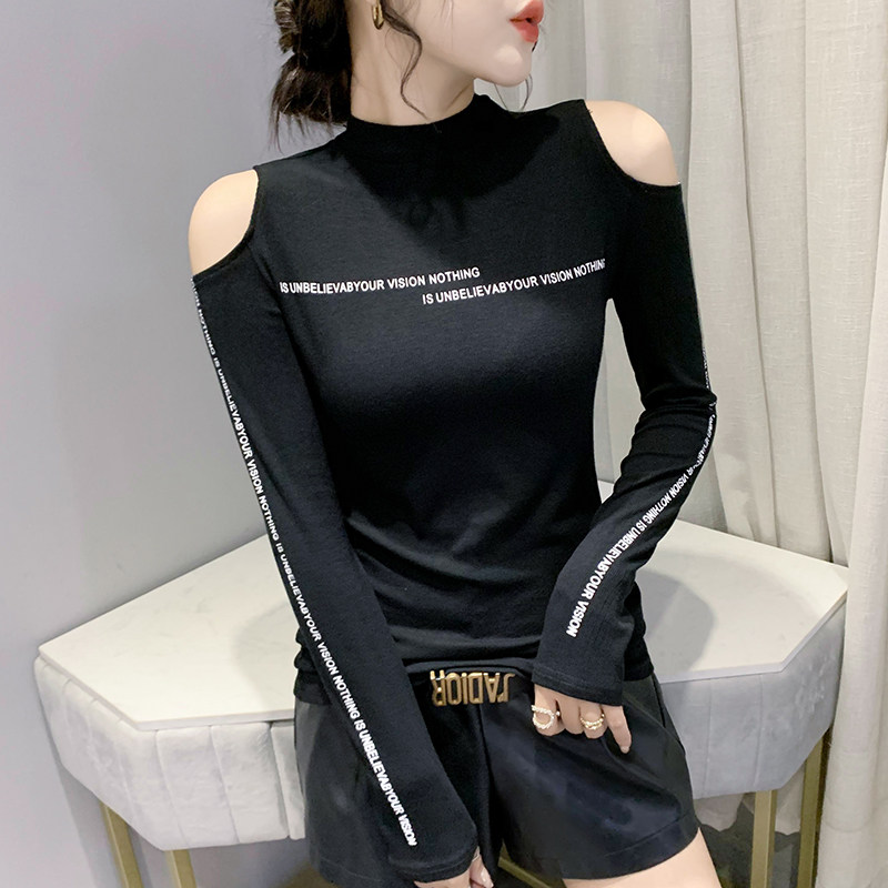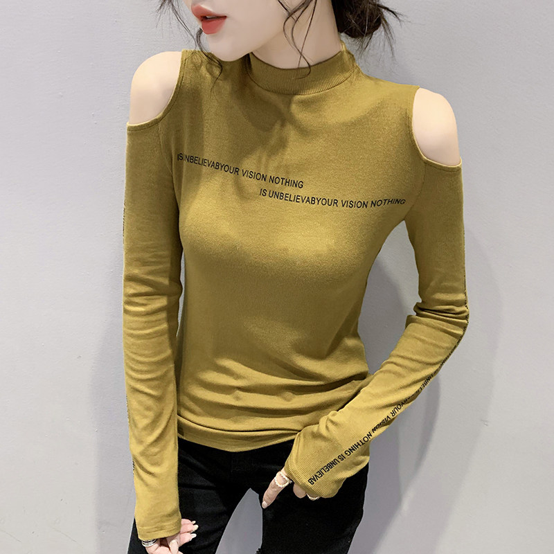 Half-height collar bottom shirt woman 2021 autumn winter new fashion sexy open-shoulder blouses with a long sleeve T-shirt tide