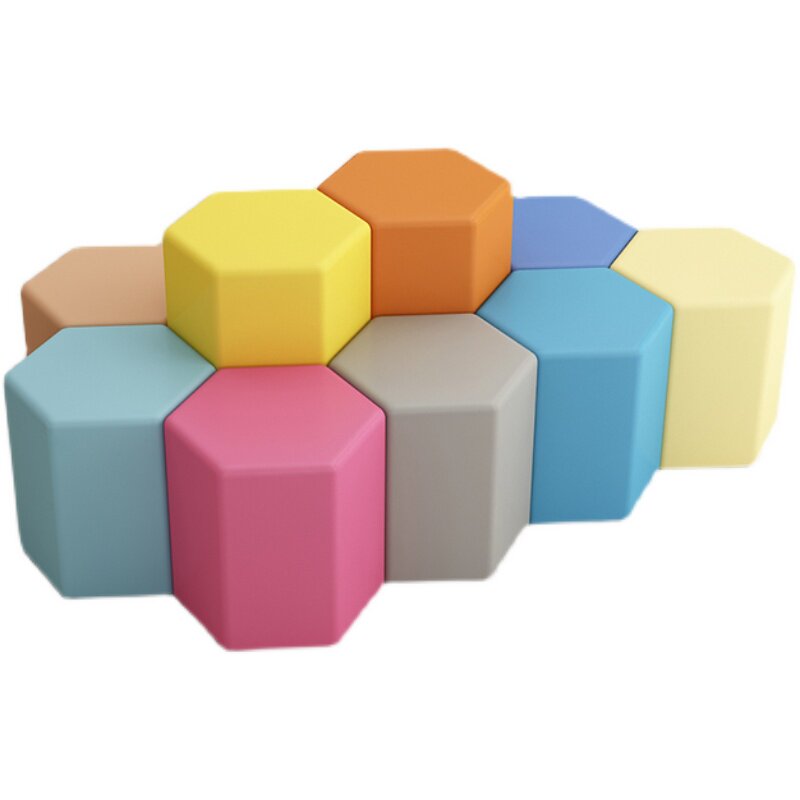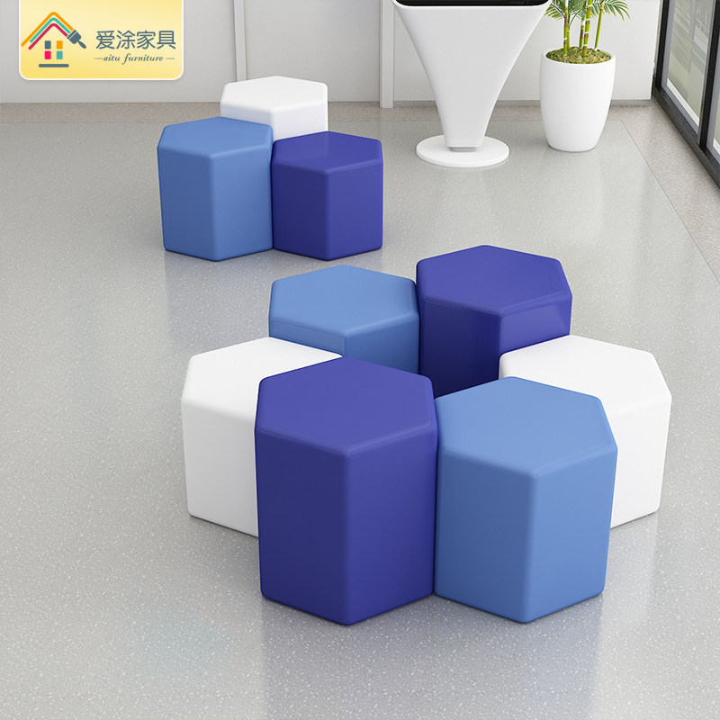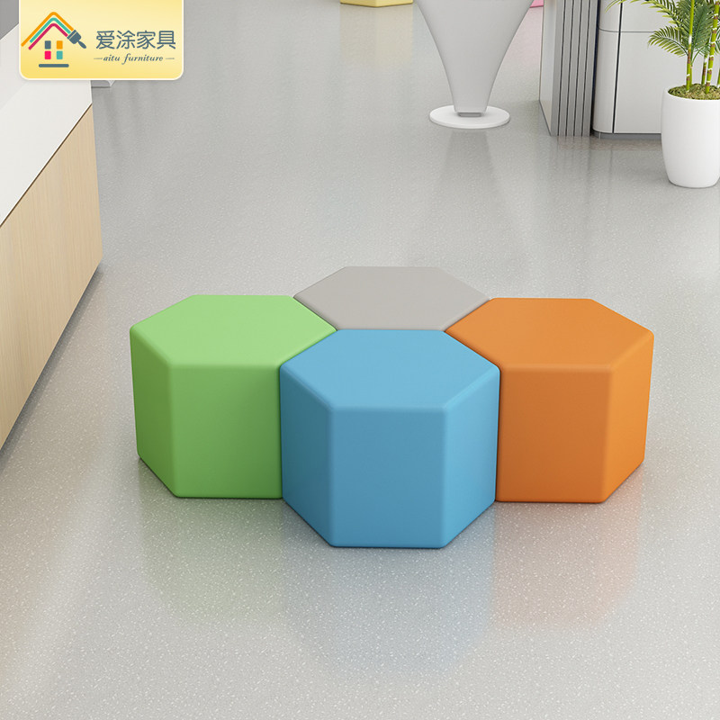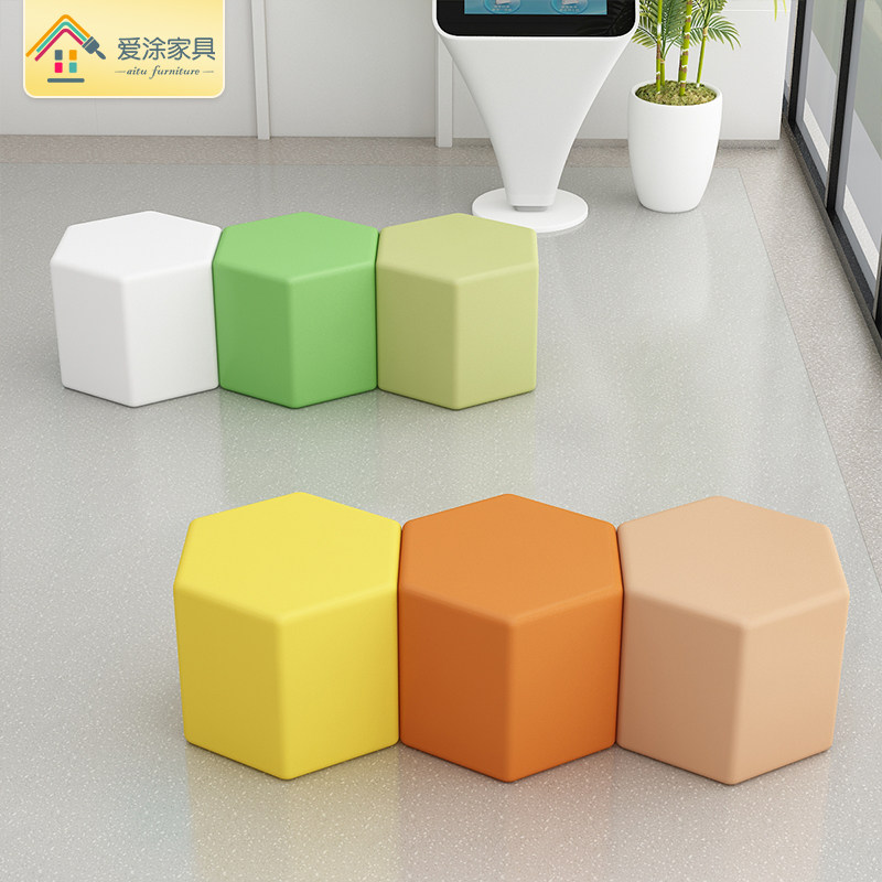 Brief Early teaching kindergarten and other waiting areas six-party rhomboid solid wood short stool soft bag multicolored pentagonal square children's stool-Taobao