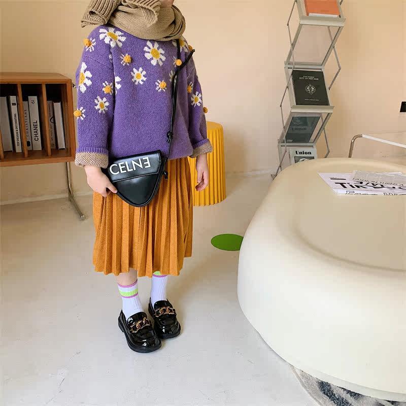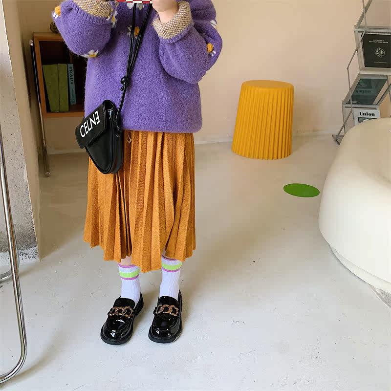 Children 100 Pleats Half Body Dress Spring Autumn 2021 Girl Foreign Pie Medium Long version of Hundred Pleats Korean version of female baby Trendy Half Skirt