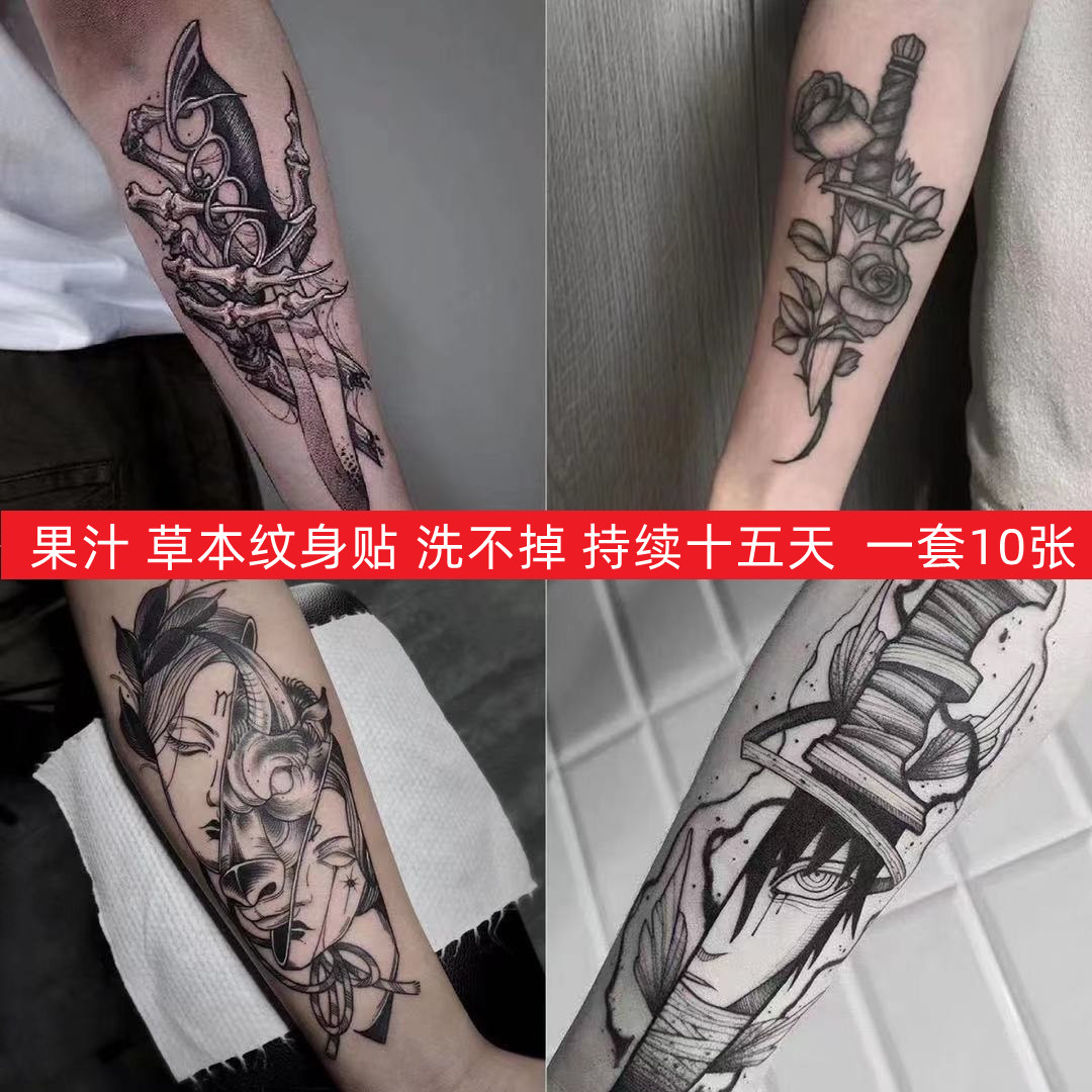 Juice herbage Tattoo Sticker gradient washout without reflecting semi-permanent ins Wind Male Dark Black Ensemble female waterproofing