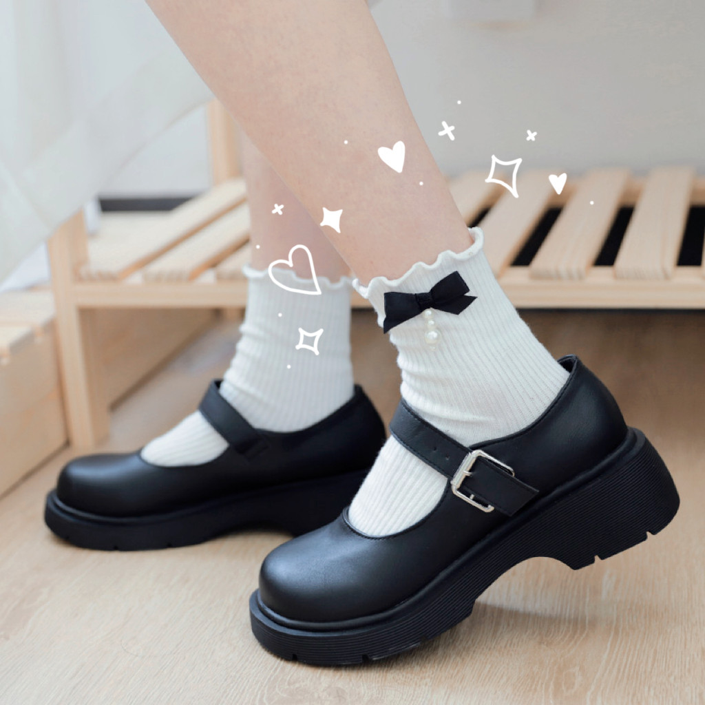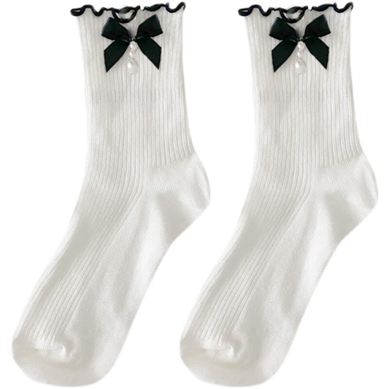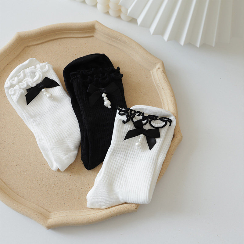 Japanese cute sweet tube socks lolita female fungus slip edge bubble socks bow loli soft girl cotton socks