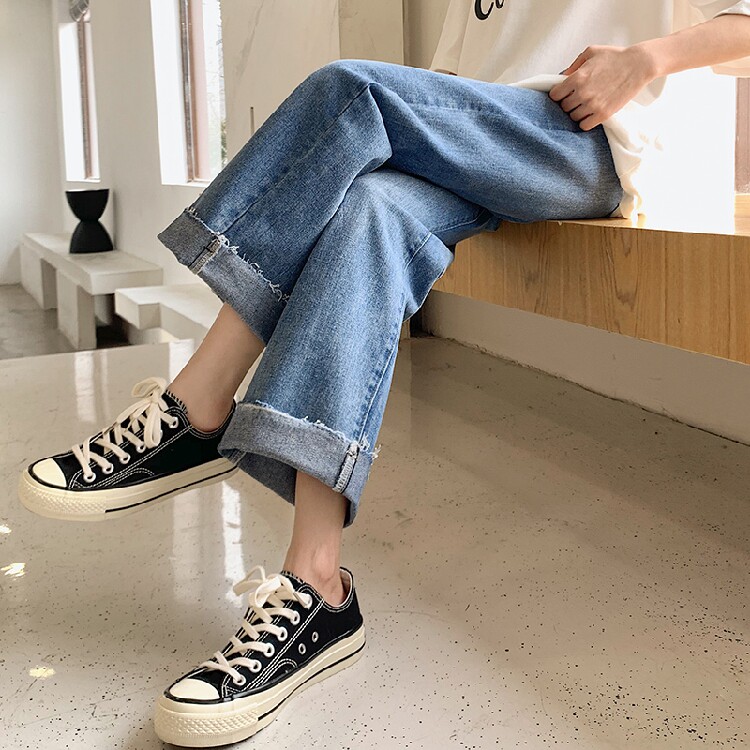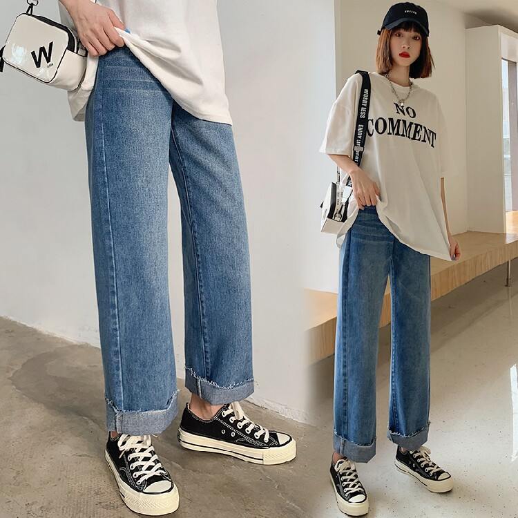 Maternity Pants Spring and Autumn Outer Wear Net Red Fashion Autumn and Winter New Maternity Jeans Raw Edge Straight Loose Slim Pants