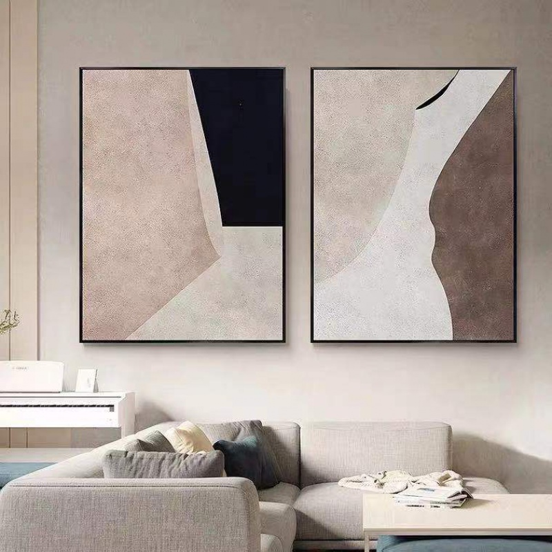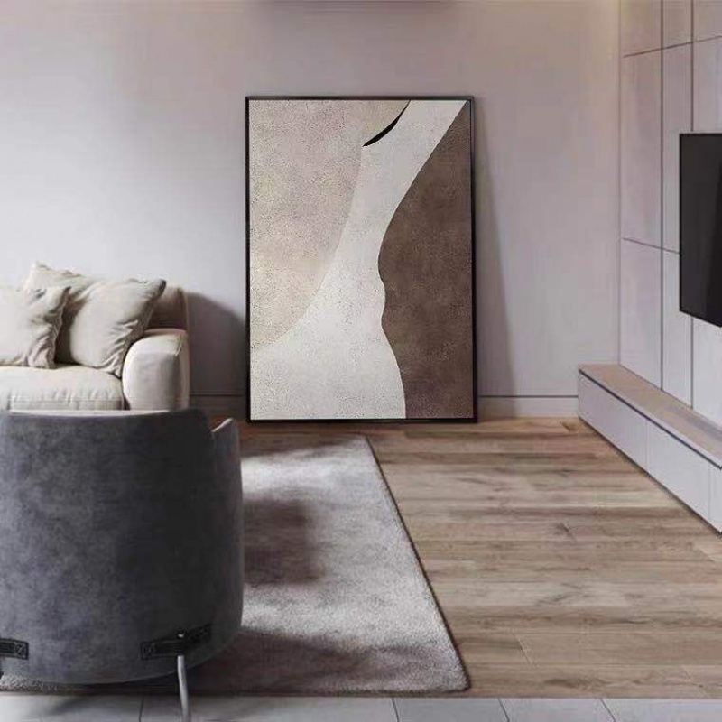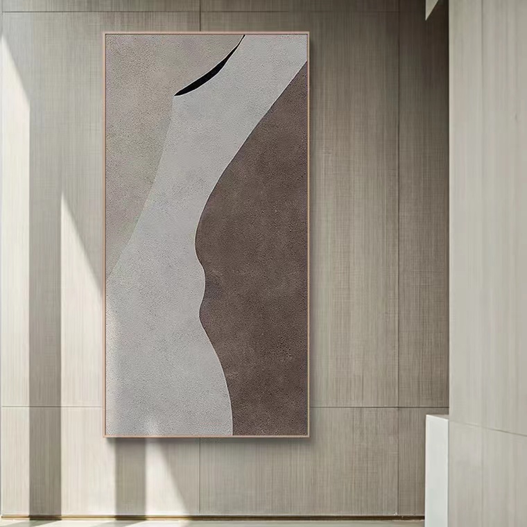 Hand-painted oil painting large floor-to-ceiling decorative painting Nordic abstract light luxury simple Morandi color system living room porch hanging painting