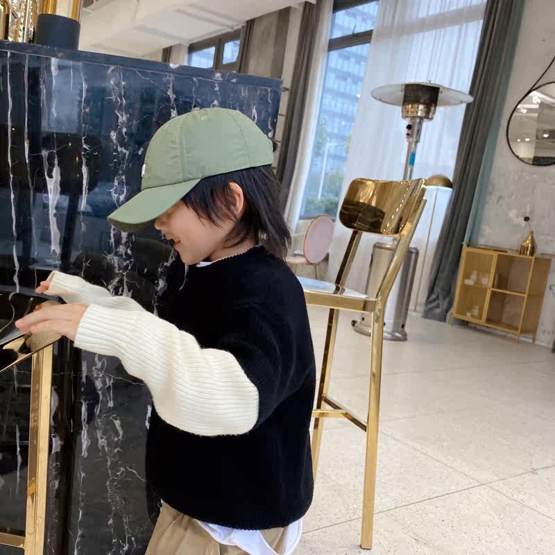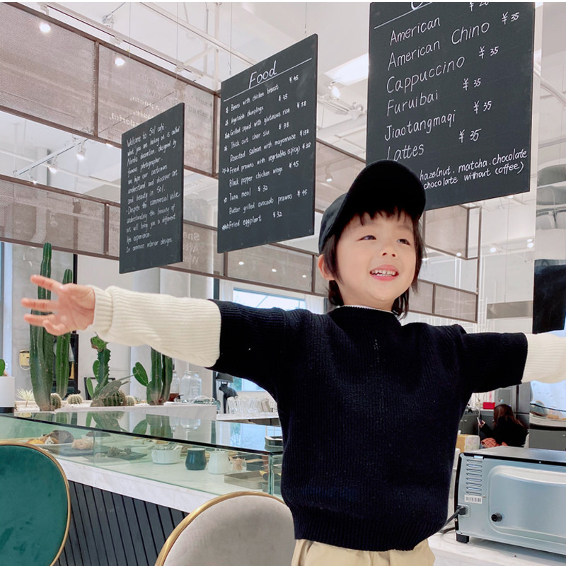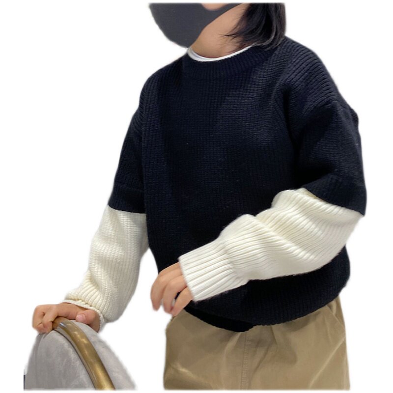 2022 winter new exclusive custom boys fake two-piece round neck sweater Original self-made Korean sweater foreign style