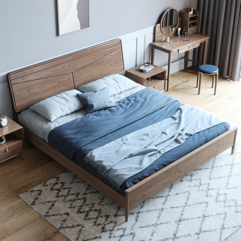 Solid wood bed 1 8 meters double bed master bedroom modern minimalist Nordic 1 5m single bed ash wood home marriage bed