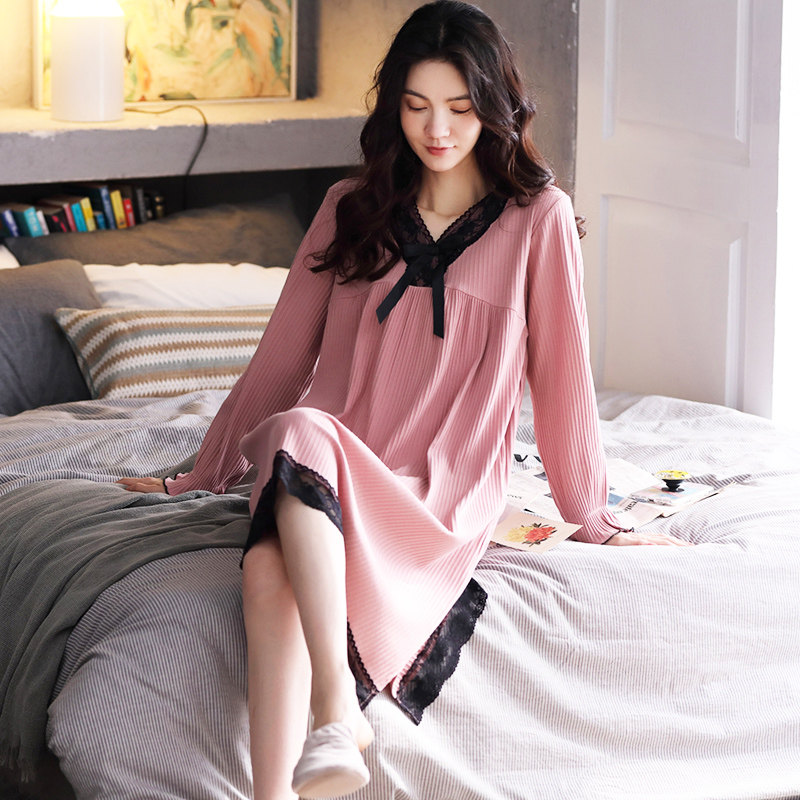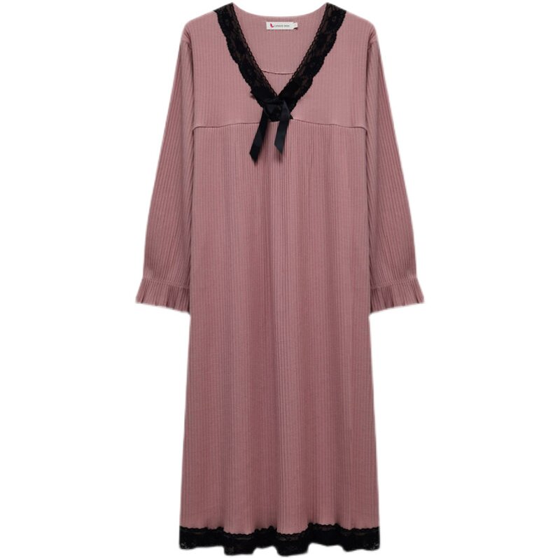 Pure Cotton Long Sleeve Sleeping Skirt Woman Fall Winter V Collar Large Size Fat MM Pregnant Woman 2022 New Long Dress Spring Autumn can be worn outside