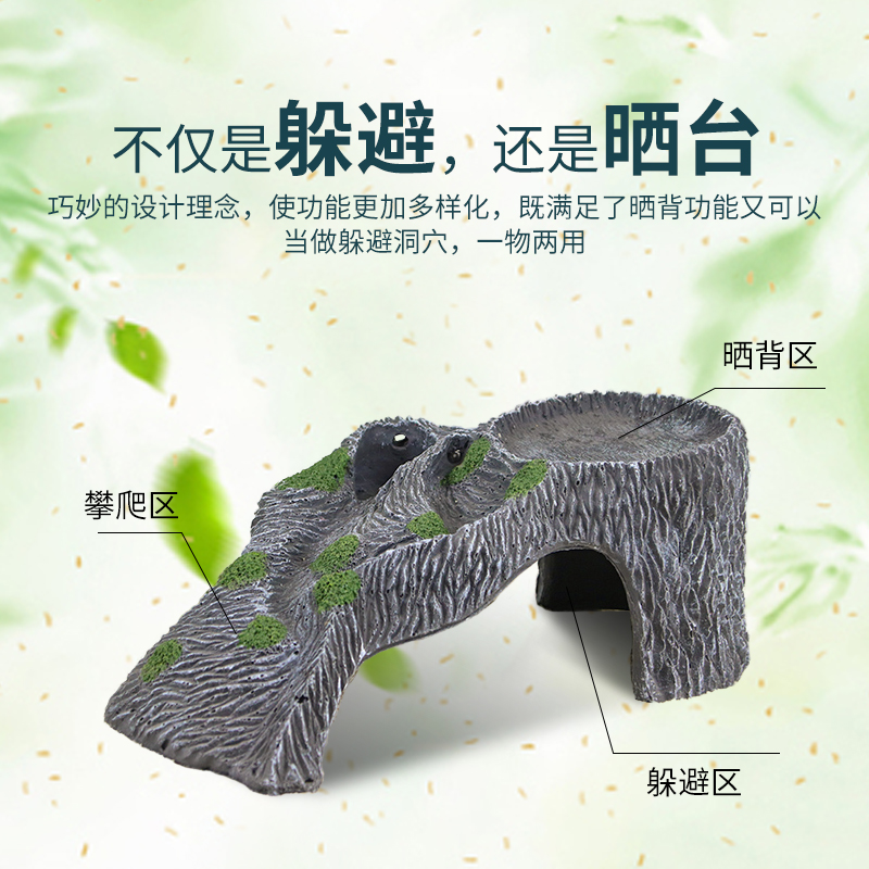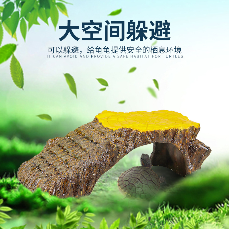 The turtle rests on the sun terrace, the small turtle climbs the fish tank landscaping, hides from the house, the turtle tank basks in the back table, the large floating platform climbs the floating island