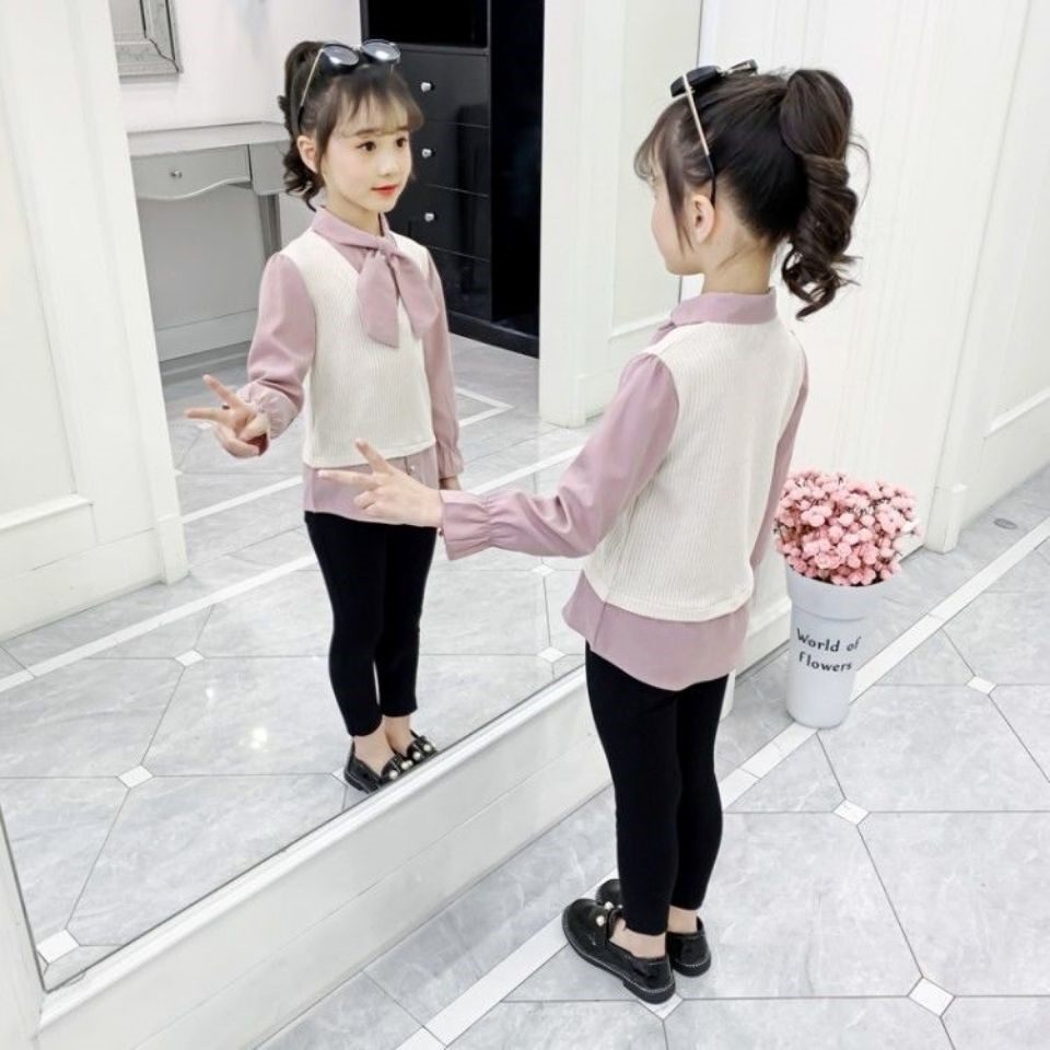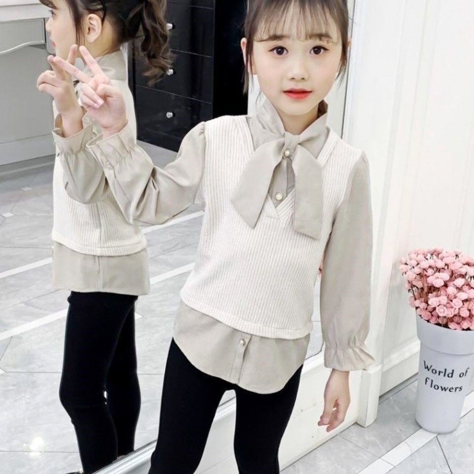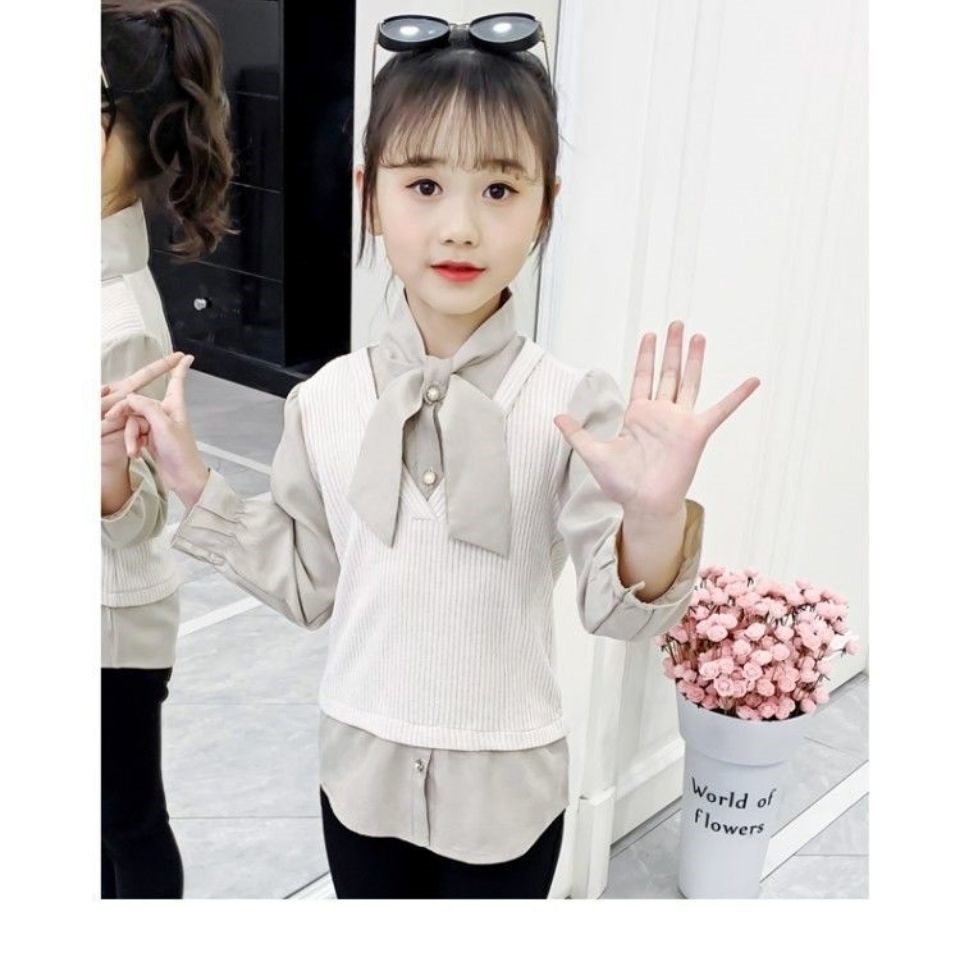 Girl's fake two shirts 2021 Spring autumn season new wave Boy loose foreign Han version CUHK Tong Long sleeve shirt