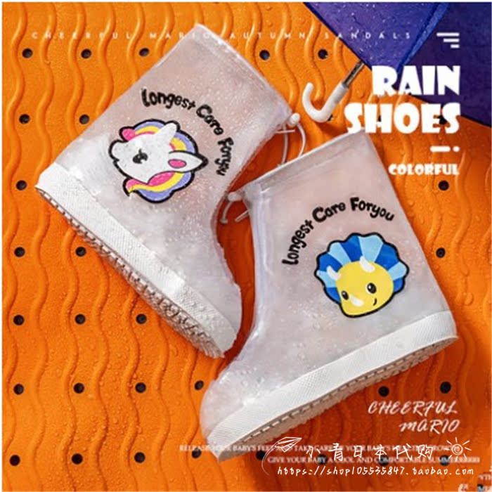 Japanese GP waterproof rain boots boys and girls primary school students thickened wear-resistant transparent lightweight mid-tube rain boots shoe cover