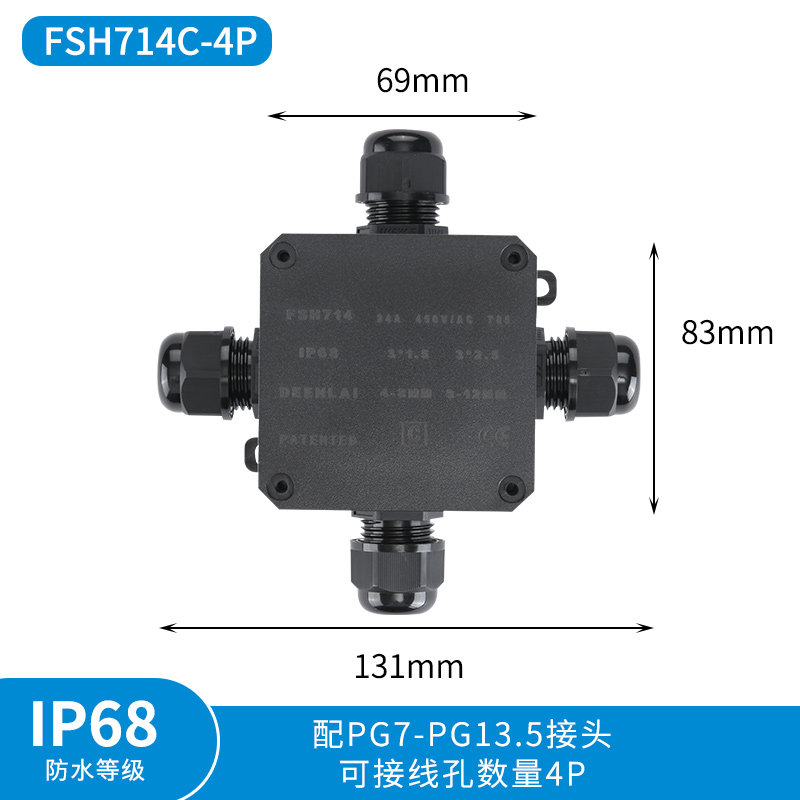 Outdoor waterproof plastic junction box with terminal outdoor sealing cable underwater buried porous selection of rain-proof