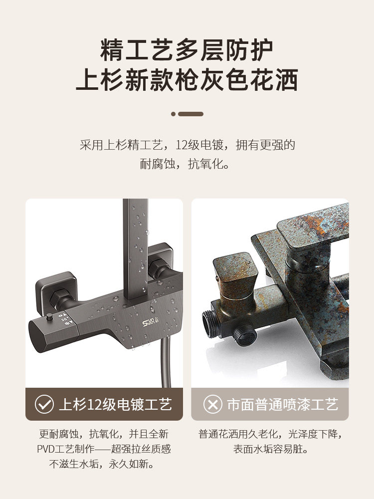 Uesugi PVD constant temperature shower shower set supercharged faucet bathroom toilet gun gray shower full copper