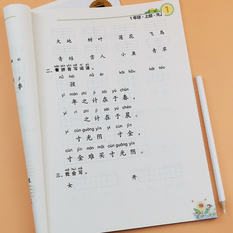 A sophomore year in the middle of the book reading the pinyin writing words language textbooks Synchronized Exercise Bookrunner's edition Primary School Language Lettutor Alphabet practice One lesson one-time homework Benmer Write a can Hand Classroom Note Exercise
