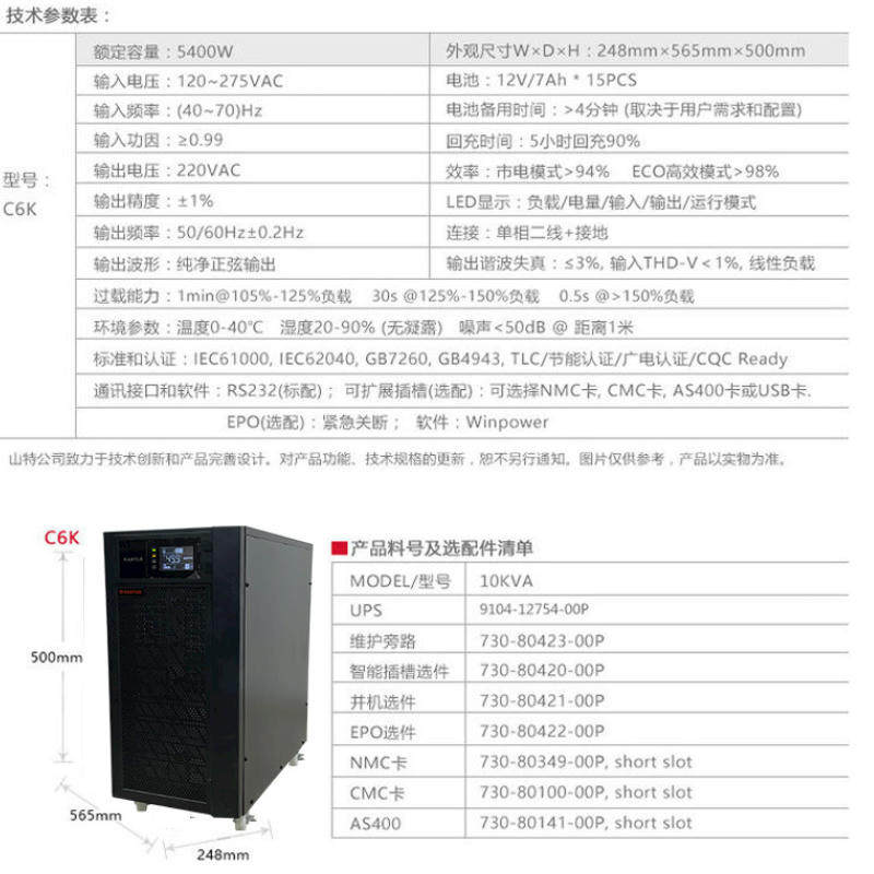 Mountain Special C6K Uninterrupted Power Cord Upper Style 5400W Commercial Computer Server Time-lapse Stabilized Lightning Protection Spare