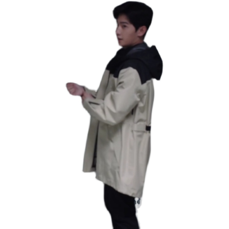 Yang Yang Black Lian Hat Splicing Wind Coat