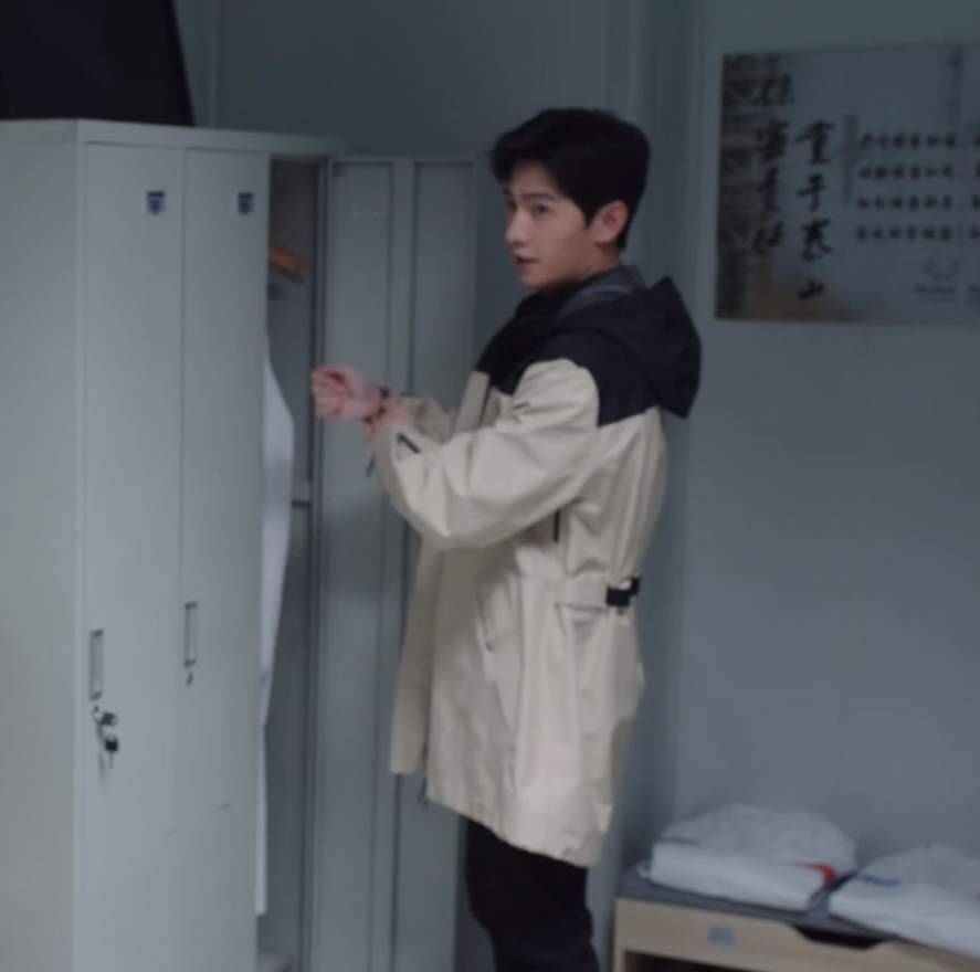 You are my glory Yang Yang in the same clothes with a hat black splicing card with a long male coat in his windsuit