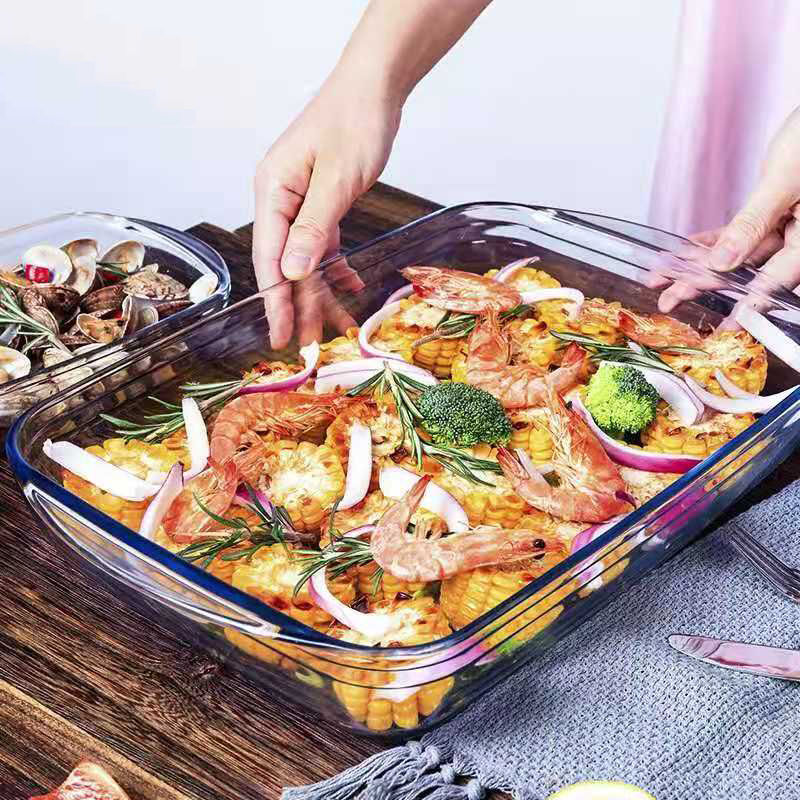 Fruit tray living room household rectangular baking tray heat-resistant tempered glass tray household oven special micro-simple modern