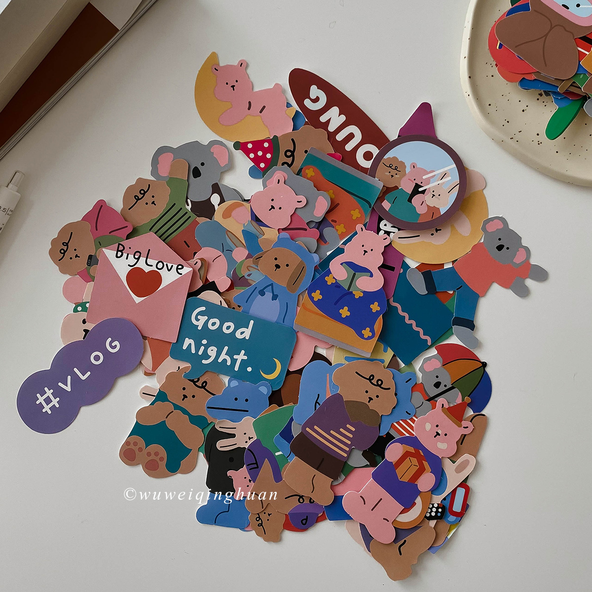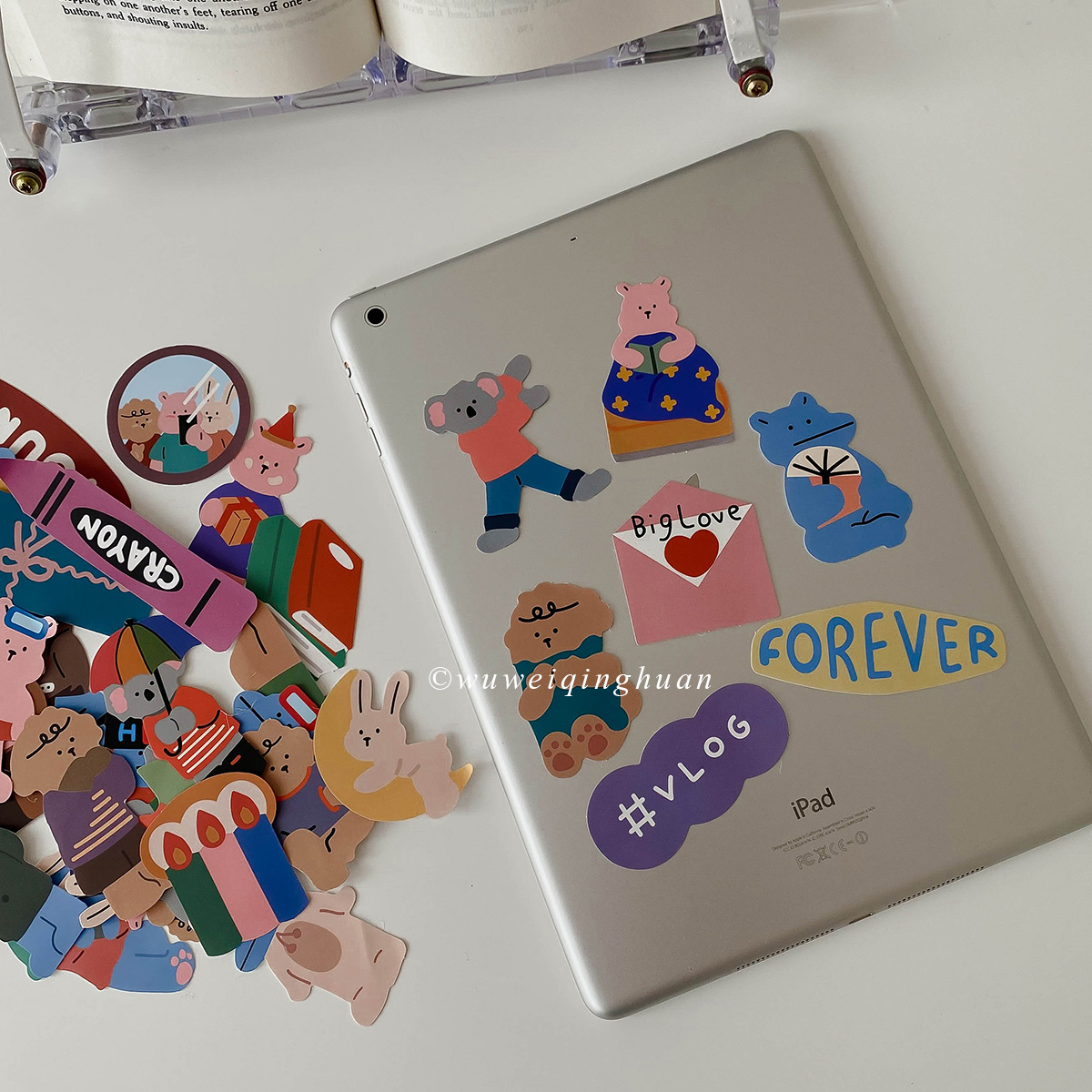 50 cute little bear no-mark waterproof sticker DIY decorated mobile phone protective shell computer insulated glass tasteless and cheerful