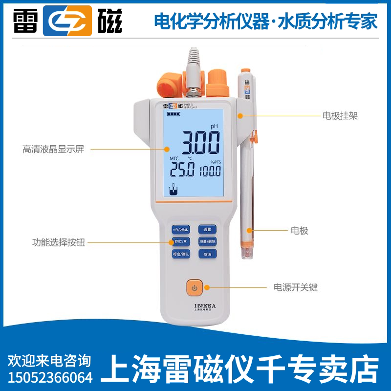 Shanghai Remagnetic PHB-5 type portable pH meter automatic temperature supplement acidometer accuracy 0-01 brand new upgrade