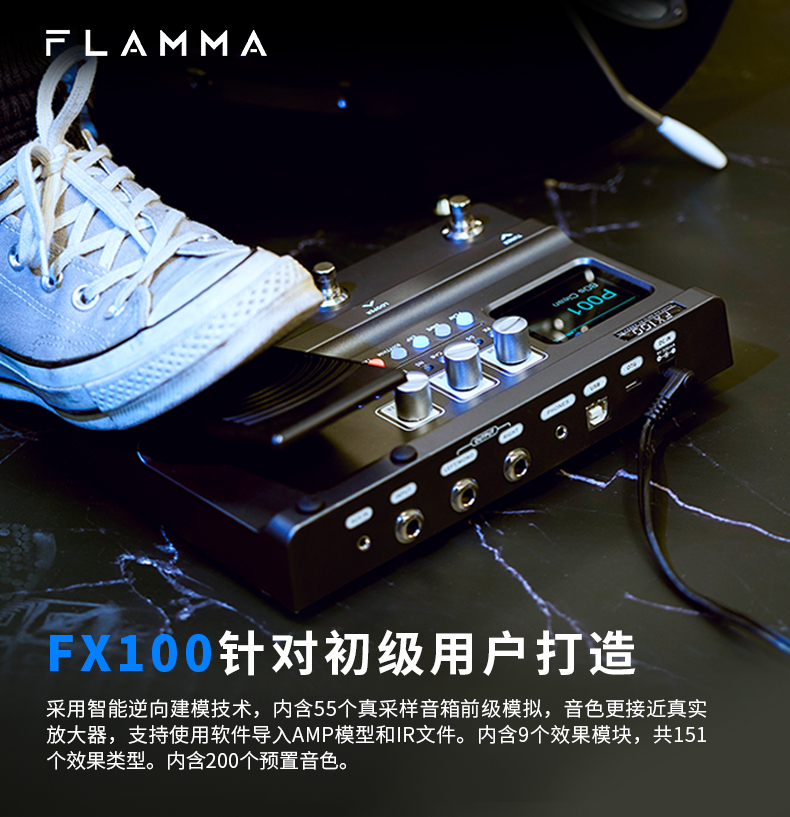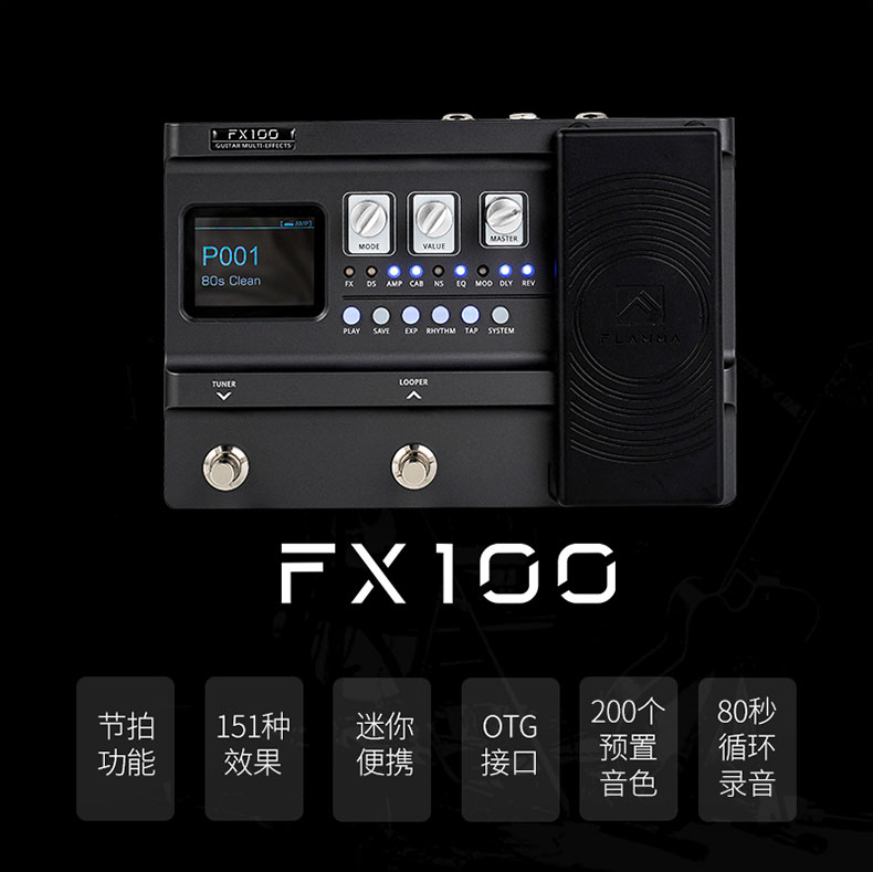 FLAMMA FX100 electric guitar integrated effectors OTG interface to record AUX IN accompaniment drum LOOPER