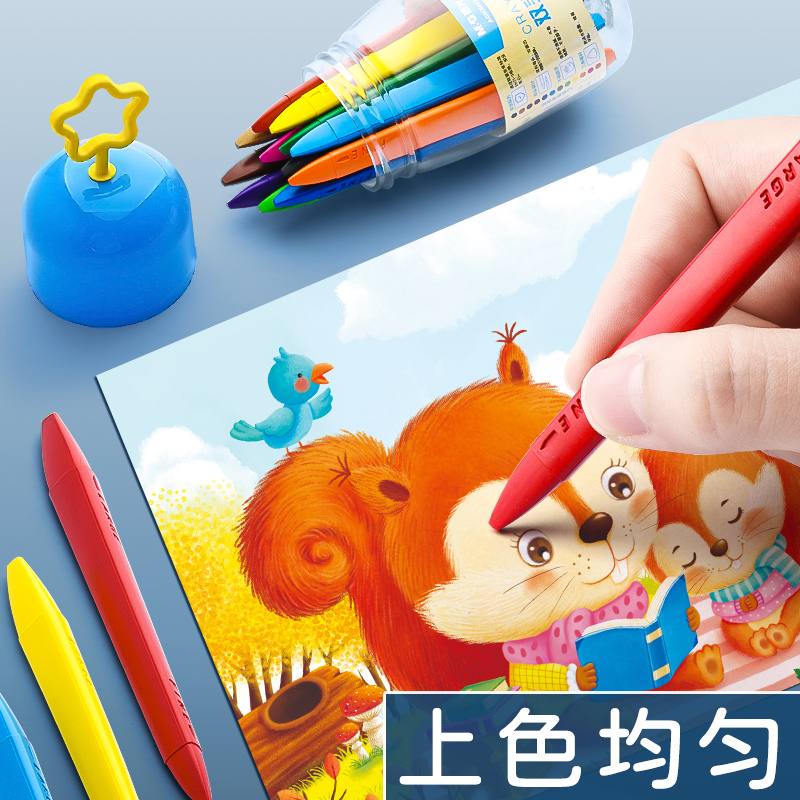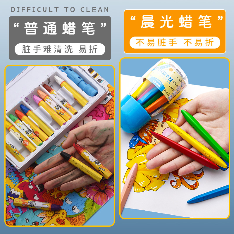 Morning light non-dirty hand crayon double head plastic oil painting stick children's baby kindergarten special safety non-toxic washable set triangle color pen non-stick hand 24 coloring paint brush
