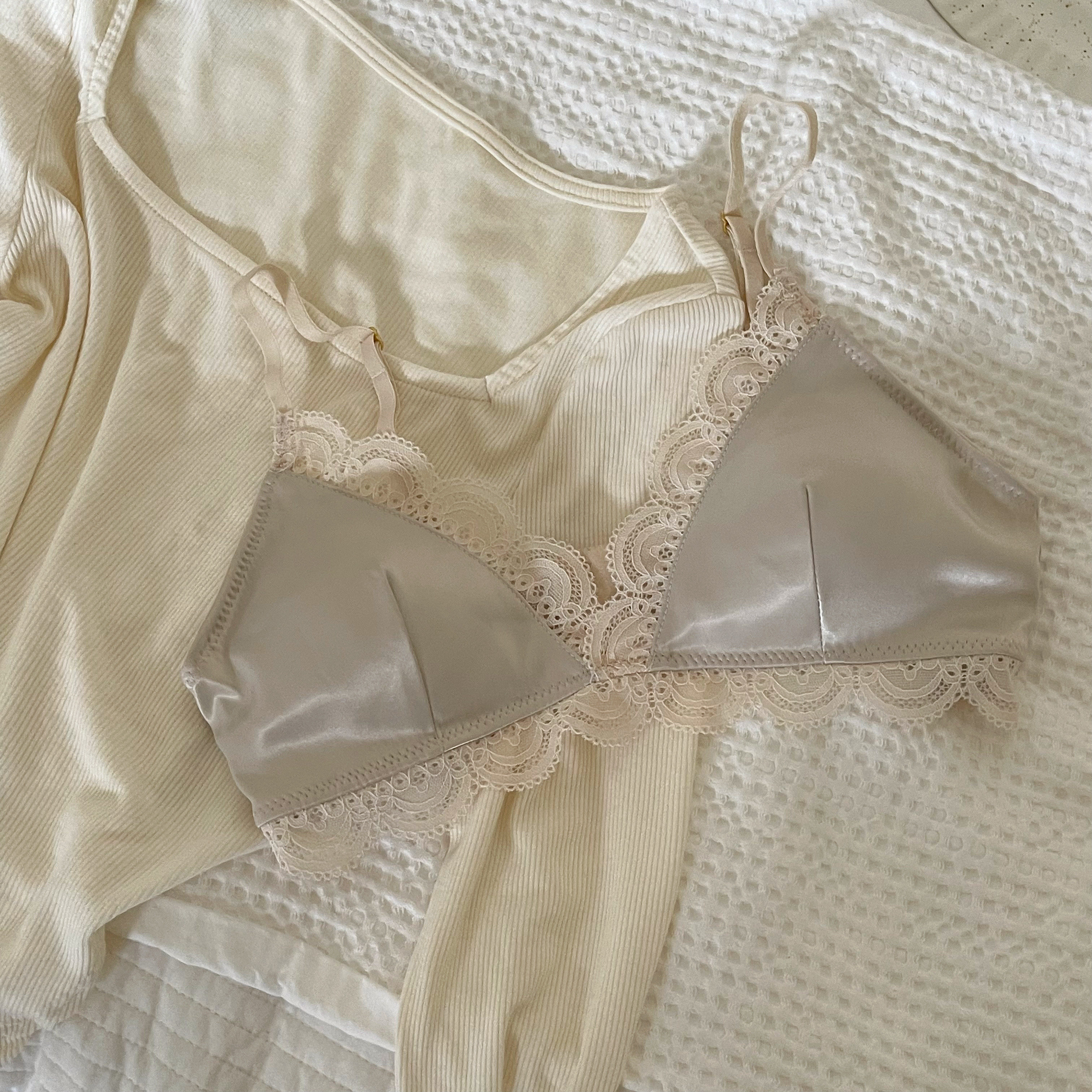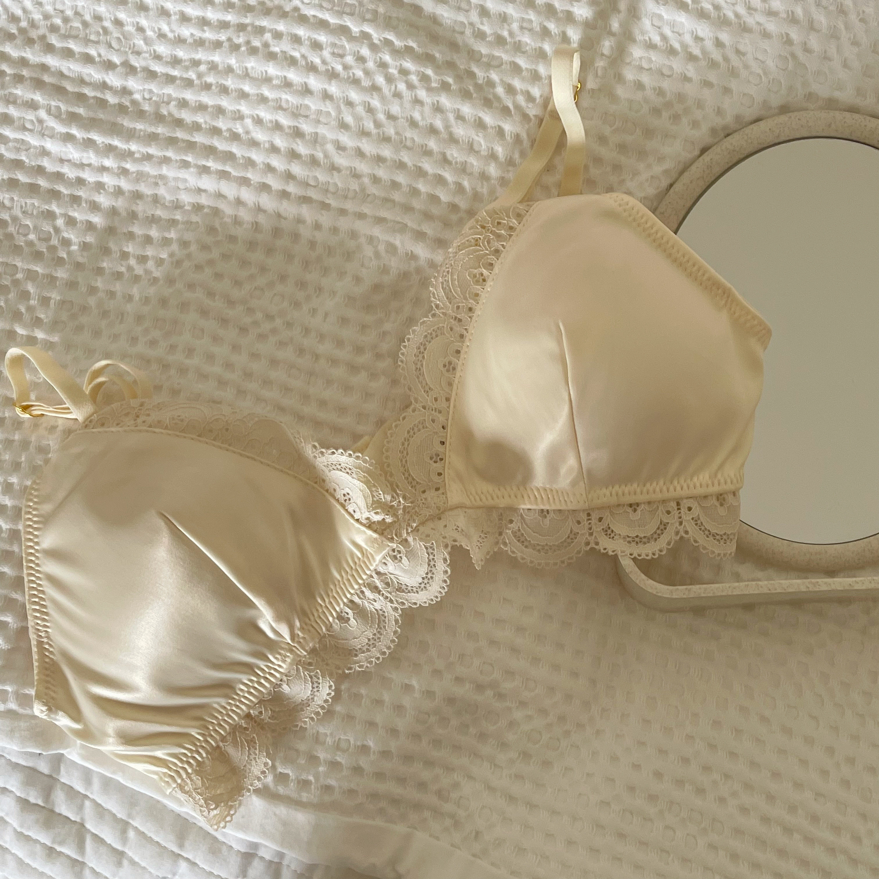 Han Wind Brief Pure color No steel ring Satin Comfort Slim lace Lace Side Triangle Cups Underwear Girl Bra