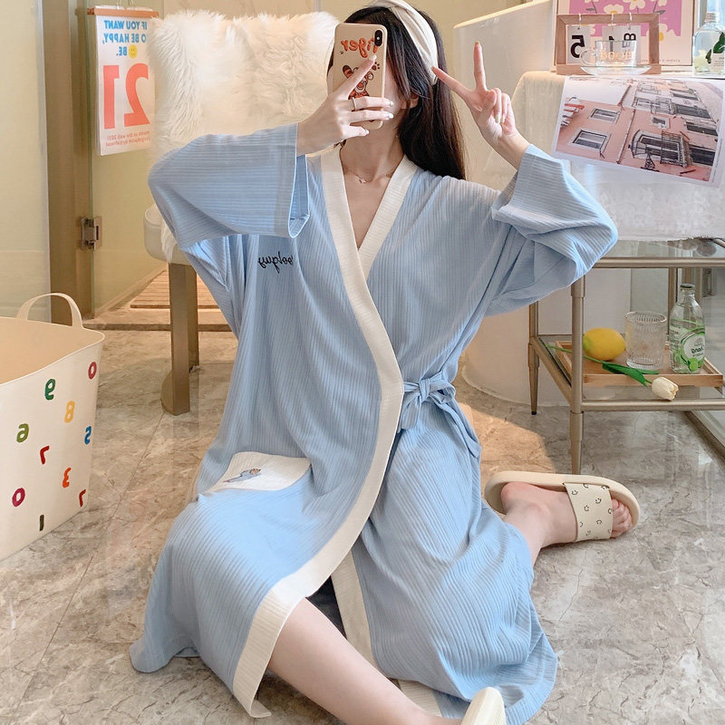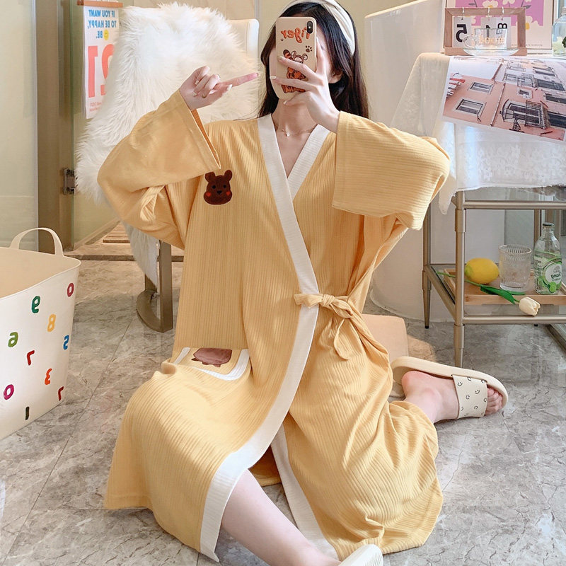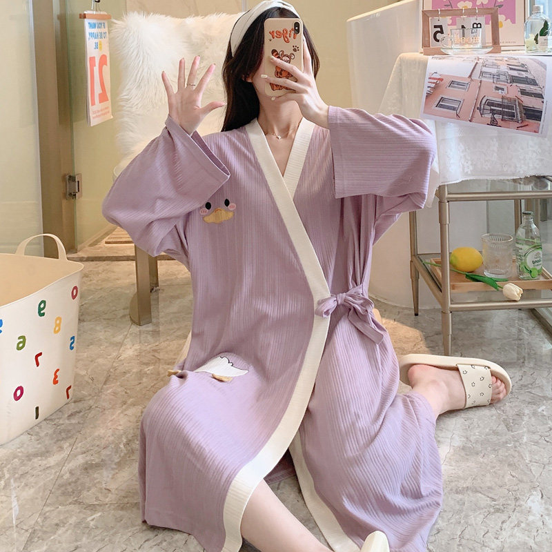 Cotton kimono pajamas women's spring and autumn long-sleeved nightgown plus fertilizer plus size fat MM200 jin long version pregnant women bathrobe