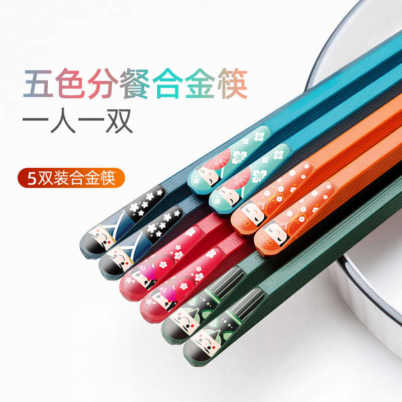 Day-Style Pointed Cuisine Chopsticks One-one-chopstick Alloy Chopsticks home Mold No Lacquer anti-slip cartoon Eating Lovers Chopsticks