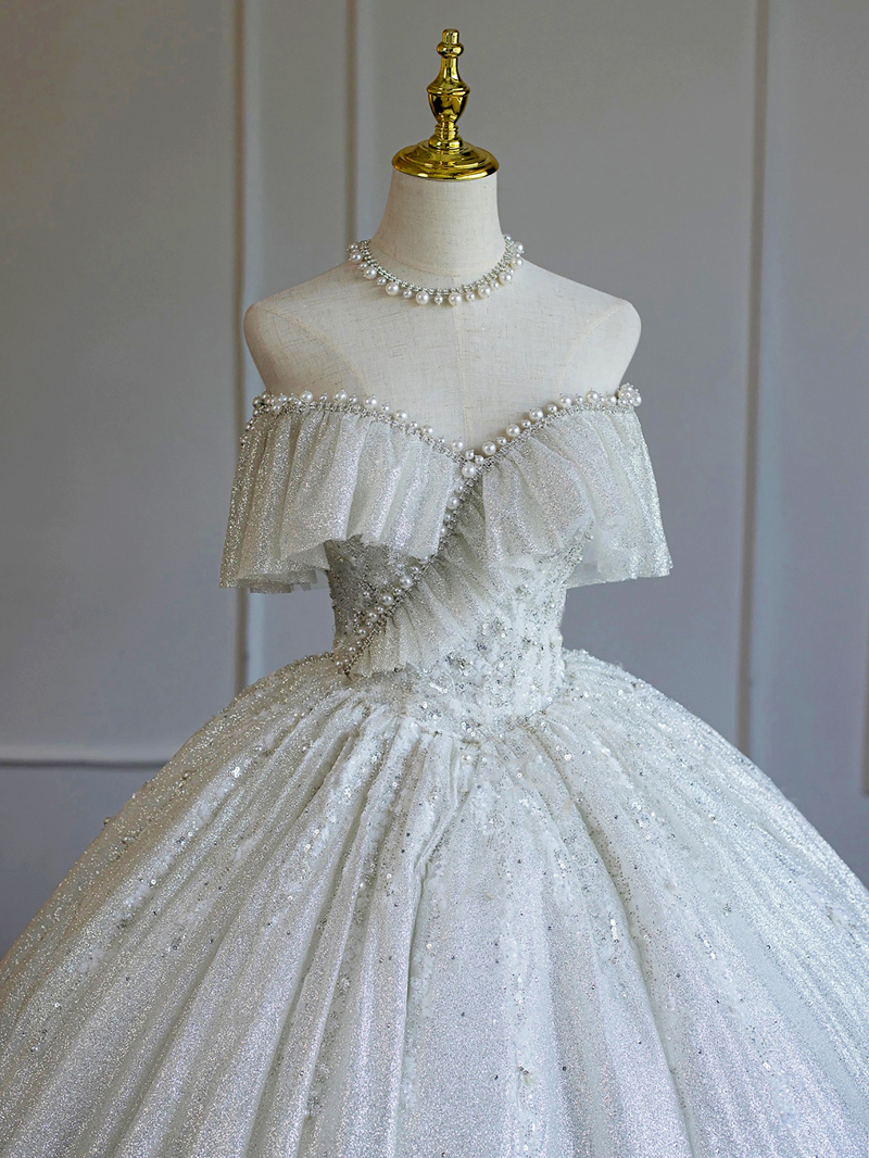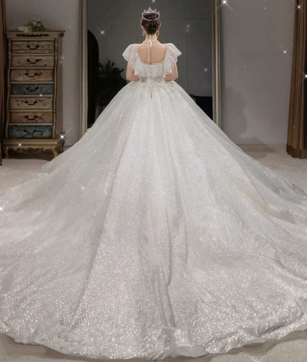 2021 new wedding dress female heavy industry French retro square collar small bride trailing main yarn to cover thick arms spring and summer