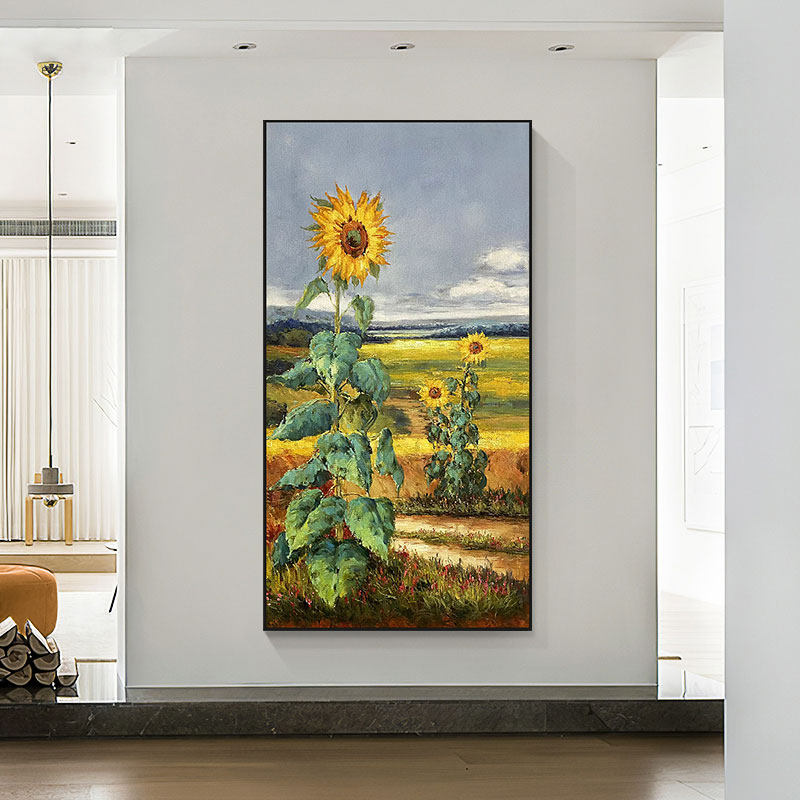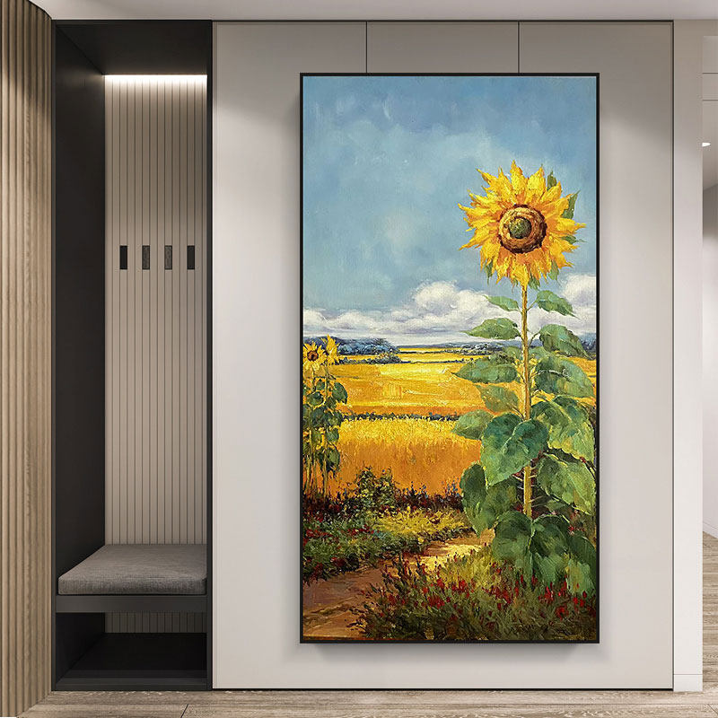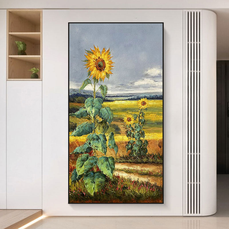 Van Gogh sunflower decorative painting hand-painted oil painting porch hanging painting corridor aisle stairway mural hand-painted texture painting