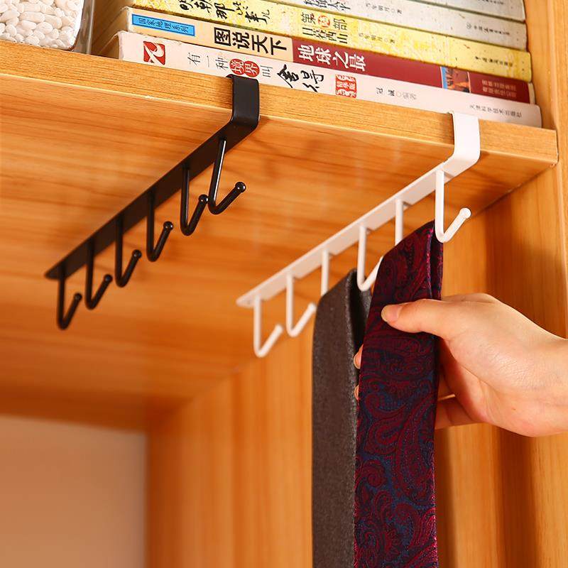 Home Kitchen Iron Art Overall Cabinet Intake Hanging Rack Multifunction Row Hook Wardrobe Finishing Frame Kitchen no-mark-free pin-free