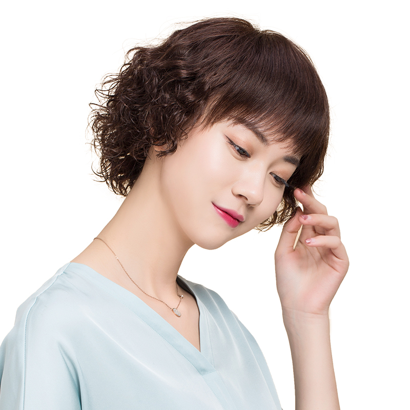 Wig Female Summer Emulation Full Headgear Short Curly Hair Chemotherapy Bald Mama Wig Sleeve Lady Middle Aged Live-action Hair