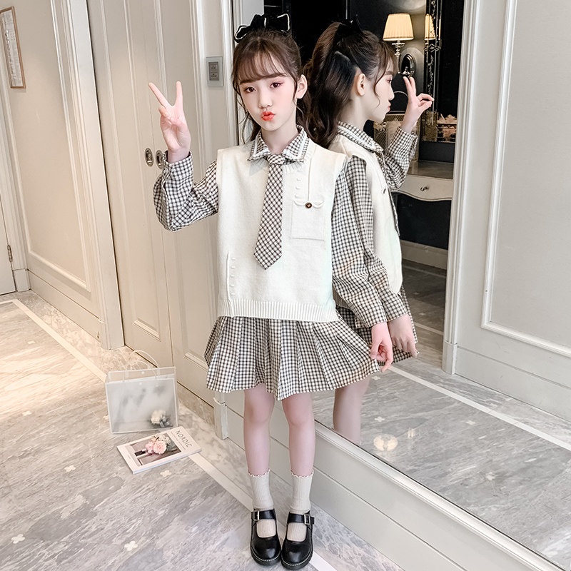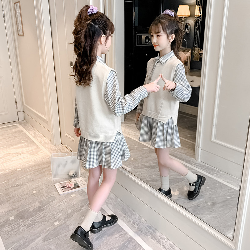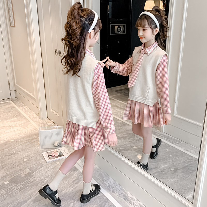 Girls Autumn Dress Costume 2022 New Children's Network Red Spring and Autumn Dress Sweater Marcus two sets