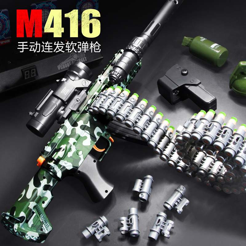 M249 big pineapple manual burst soft bullet gun 416 chicken eating equipment can launch simulation toy gun model boy