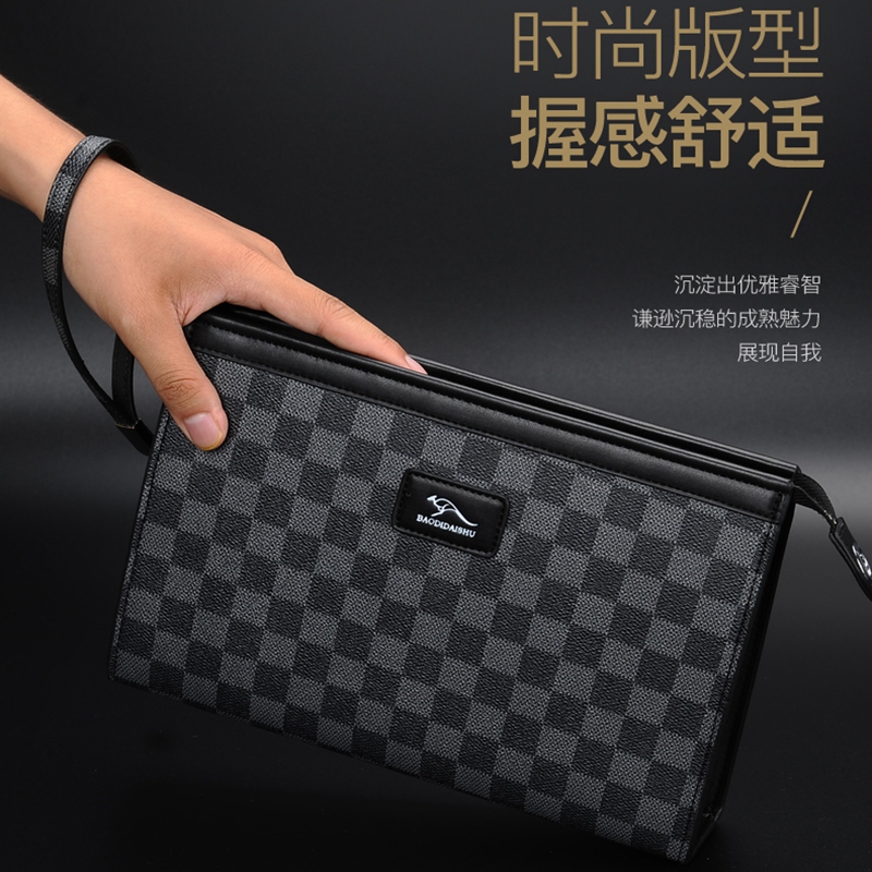 Hong Kong duty-free new men's clutch bag light luxury business plaid envelope bag fashion leather clutch bag