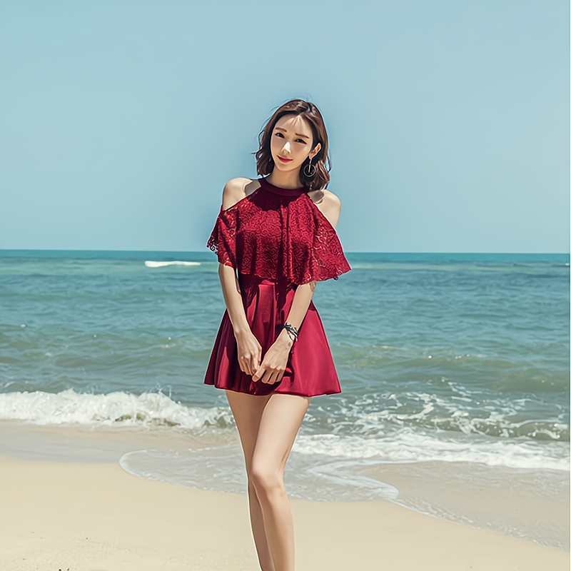 Swimsuit women's summer 2022 new Korean skirt-style cover belly is thin and conservative fat mm large size one-piece hot spring swimsuit