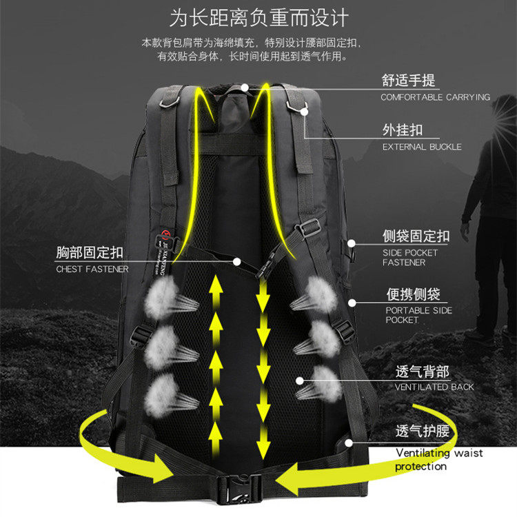New travel Shoulder Bag Men 60L Baggage Double Shoulder Bag Woman Large Capacity Waterproof Oxford Cloth Minus climbing Baking Pack Step