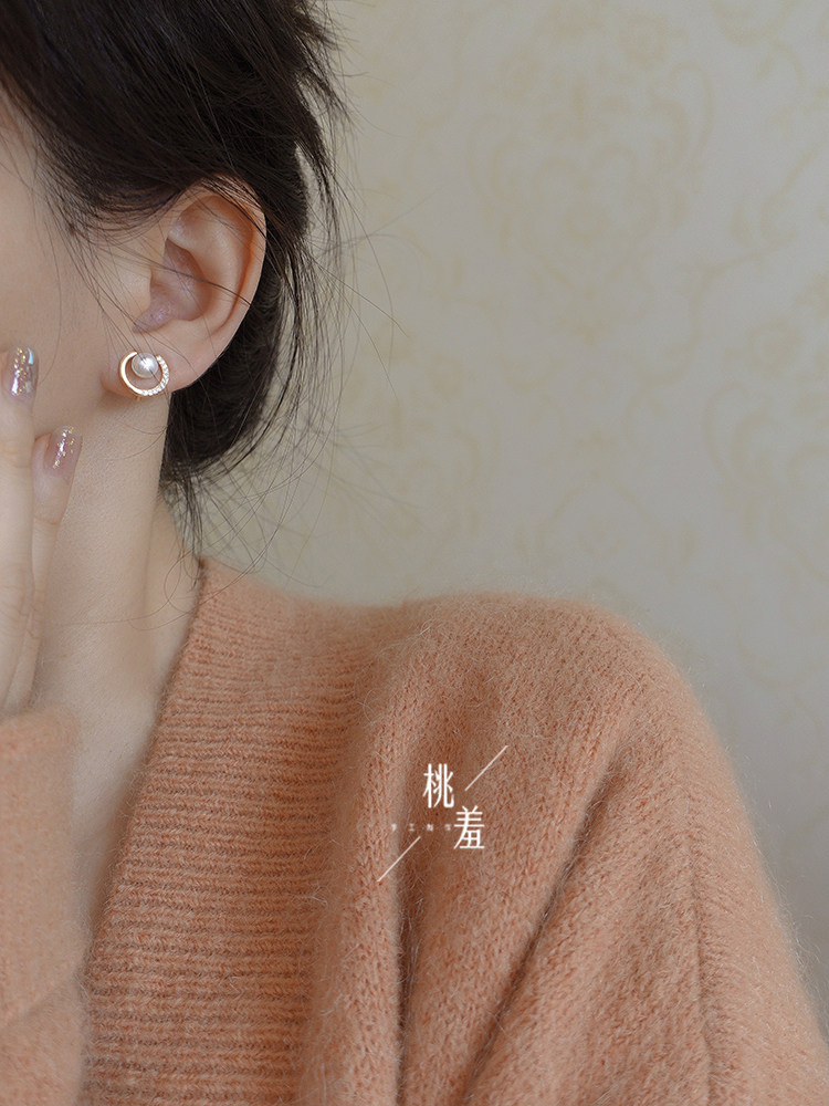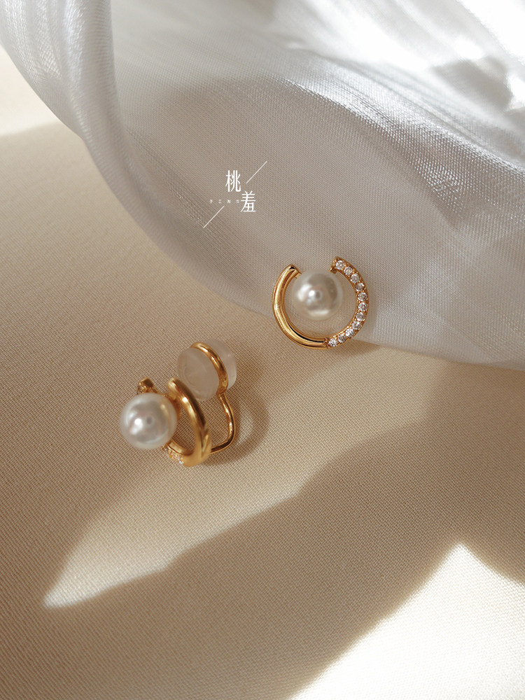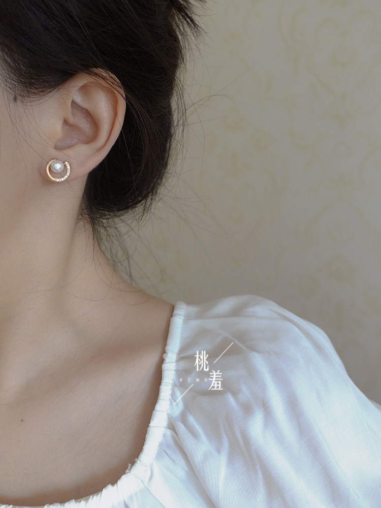 Sterling silver new trendy pearl no ear piercing ear clip mosquito coil earrings Japanese and Korean temperament design high-end fashion earrings