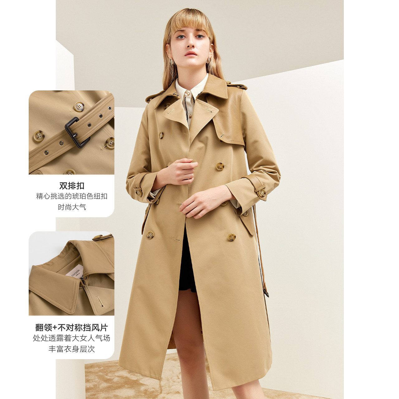 missCOCOON card with its color windcoat jacket female spring 2022 new sheepskin splicing medium high end large coat