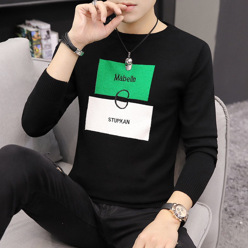 2021 autumn new round neck sweater men's striped knitted base shirt spring and autumn thin Korean slim trend sanitary clothing