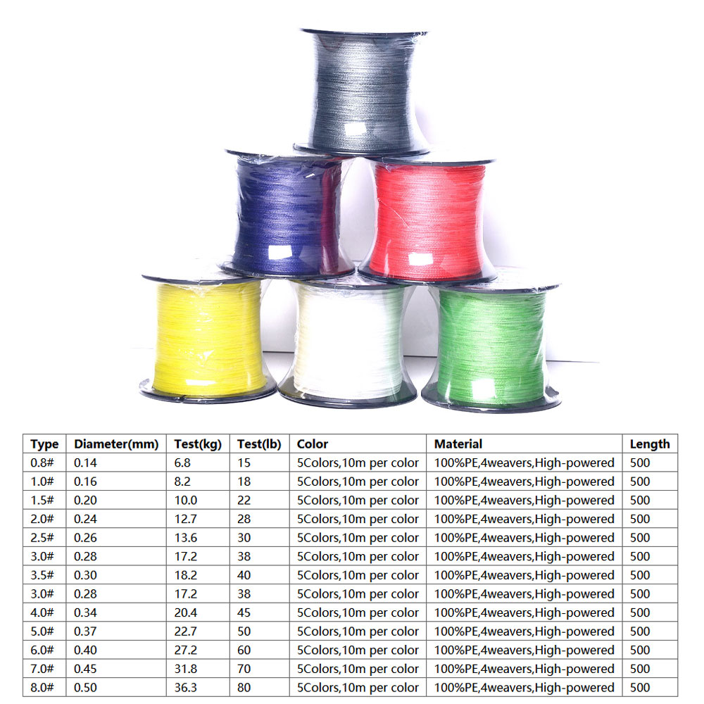 Hengjia fishing gear vigorously horse fishing line 500 meters 4 braided multi-color braided PE line sea fishing anti-bite Luya special fishing line