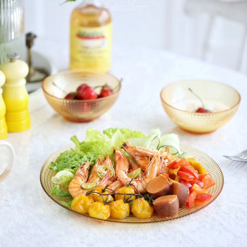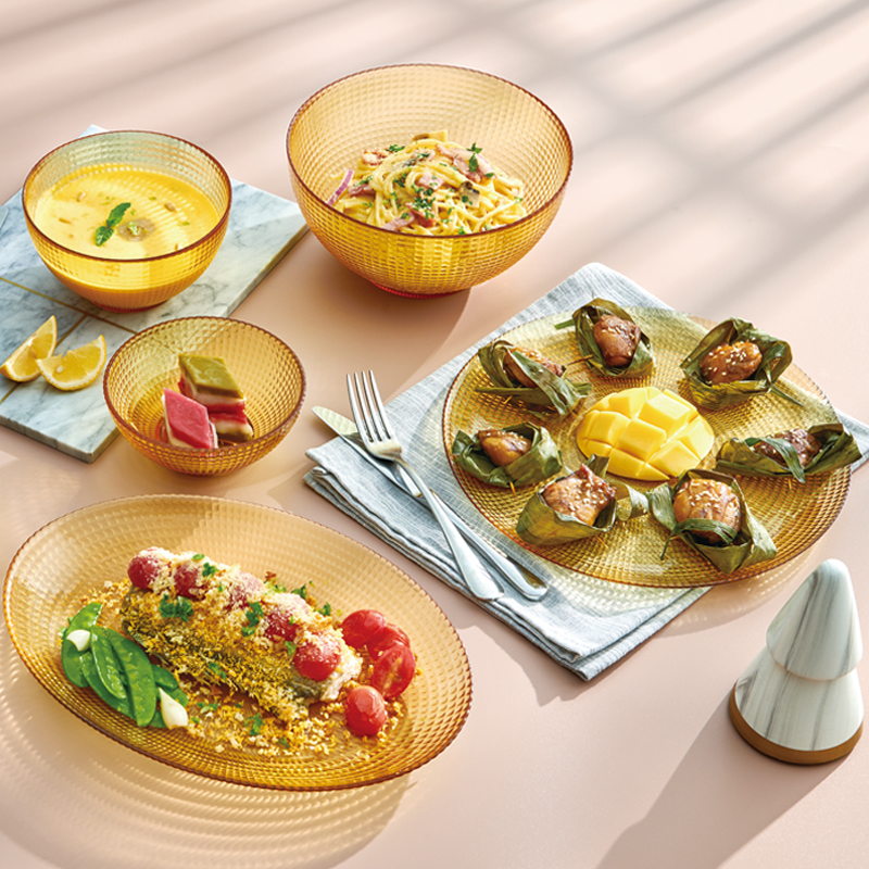 Corning tableware glass bowl high temperature resistant household heat resistant noodles soup bowl transparent amber microwave rice bowl high color value
