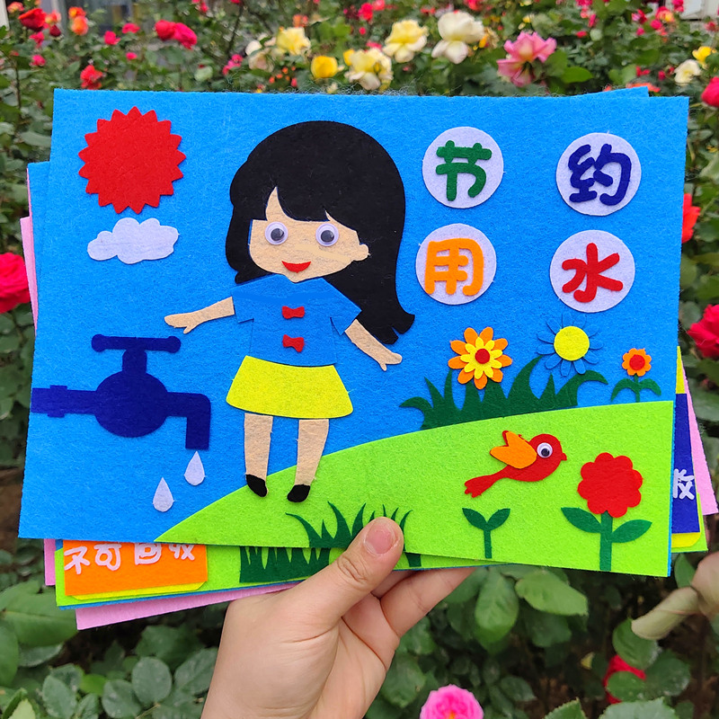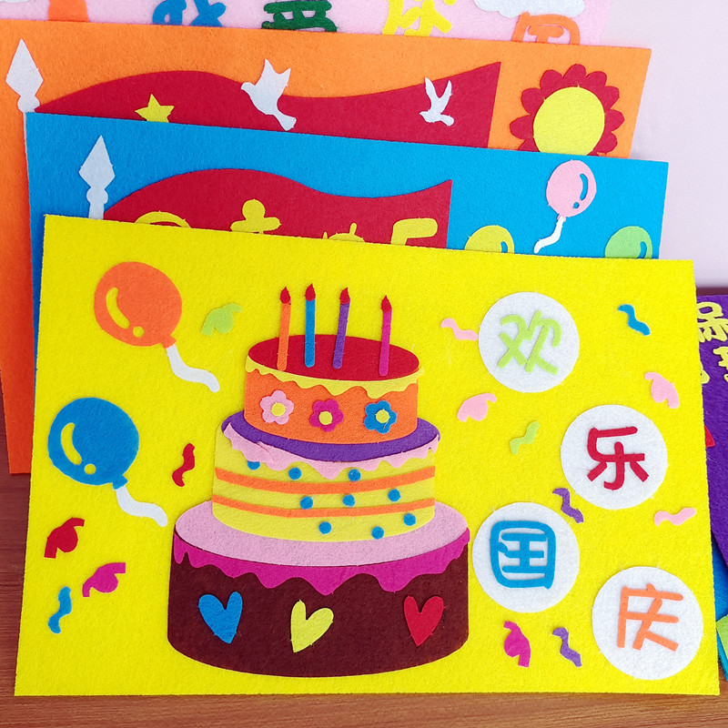 Unwoven Fabric Stickup Diy Handmade Material Bag Large Number Children 3D Solid Adhesive Drawing Cartoon Puzzle Toys